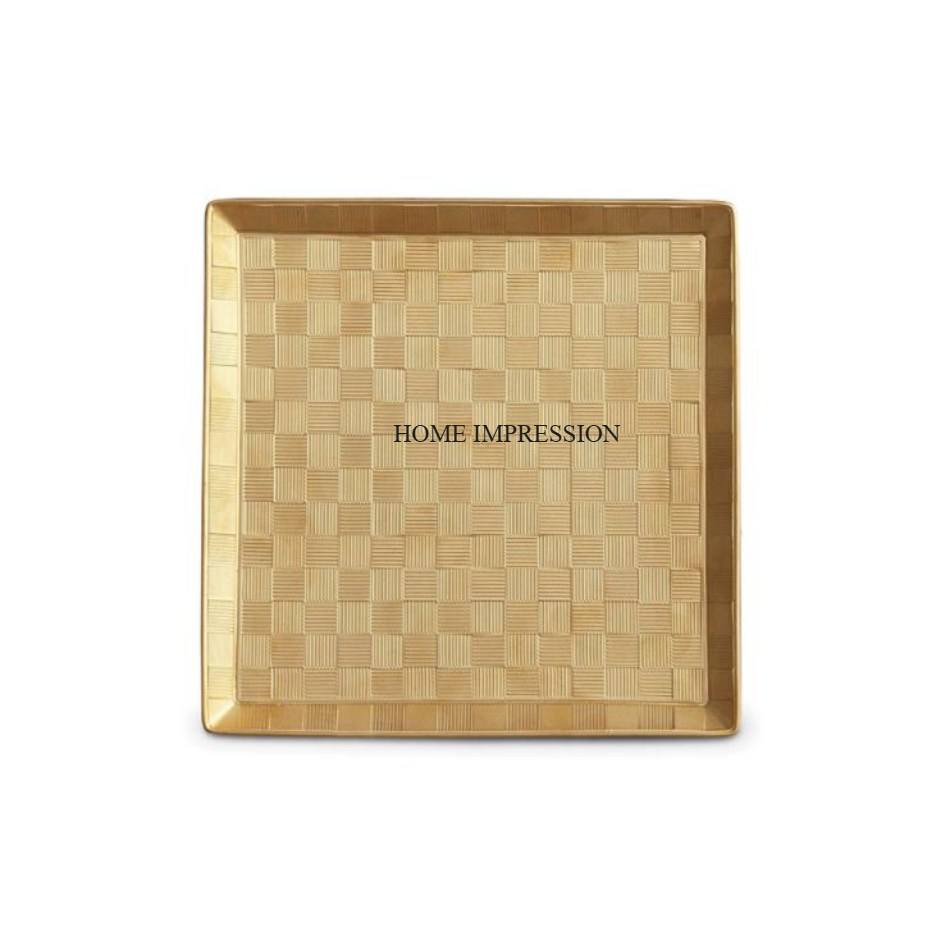 Square Shape Aluminium Food Serving Tray Attractive Designing Gold Color Decorative Food Server Ware Tray and Platter For Sale