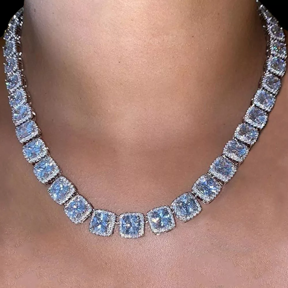 สร้อยคอเพชรทรงสี่เหลี่ยมแบบฮิปฮอป ทองคำแท้ พร้อมใบรับรอง ของขวัญสำหรับสามีหรือภรรยา