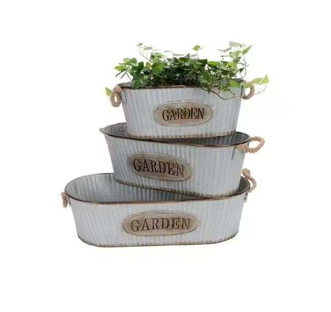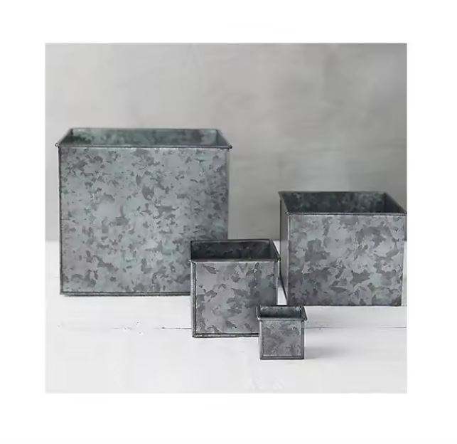 รูปทรงสี่เหลี่ยมชุบสังกะสีเครื่องปลูกที่ทําด้วยมือในครัวเรือนเครื่องปลูกสมุนไพรหม้อพืชคอนเทนเนอร์สําหรับซัพพลายเออร์ขายส่ง