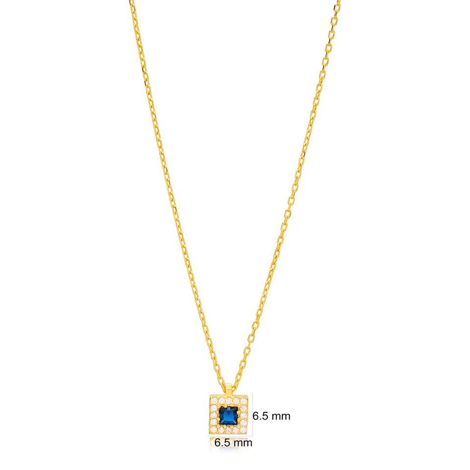 รูปทรงสี่เหลี่ยมเสน่ห์ที่เรียบง่ายสร้อยคอจี้หินไพลินขายส่งเครื่องประดับเงินสเตอร์ลิง 925