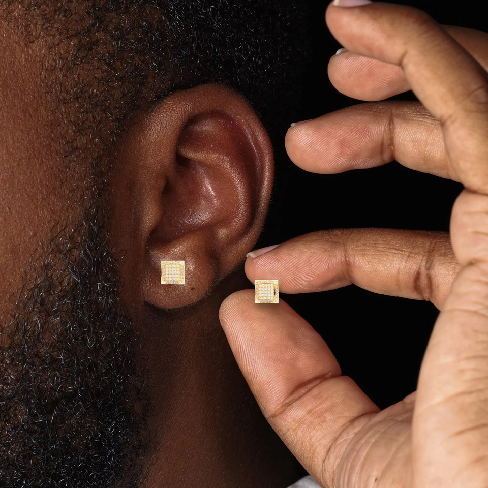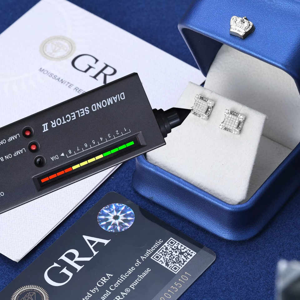 ต่างหูเพชรโมอิสทรงสี่เหลี่ยมสำหรับผู้หญิงเครื่องประดับหูฮิปฮอปออกเย็นจัดปาร์ตี้เป็นประกาย