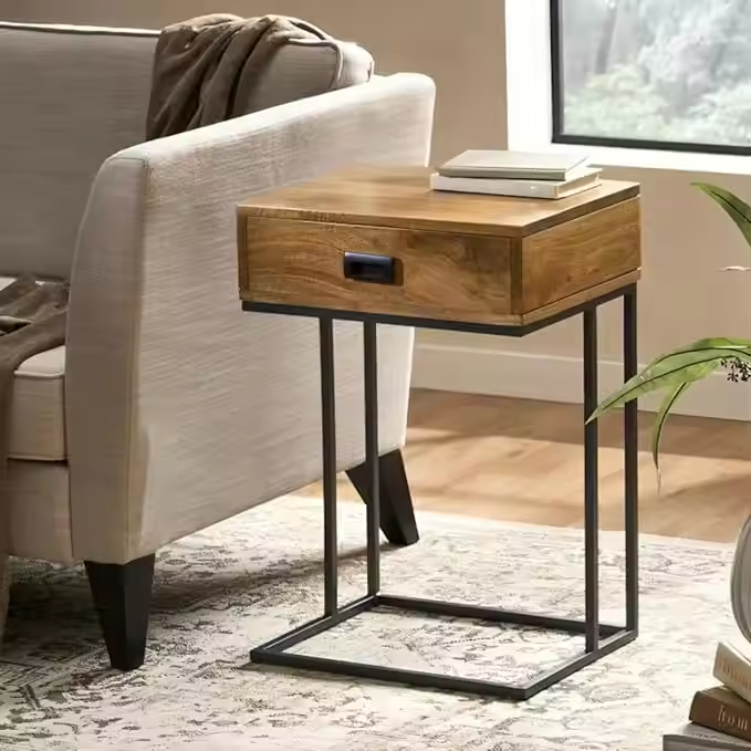 โต๊ะน้ำชารูปทรงสี่เหลี่ยมโต๊ะข้างโลหะไม้ดีไซน์ทันสมัยห้องนั่งเล่นหรูหราโต๊ะกาแฟโรงแรมระเบียง