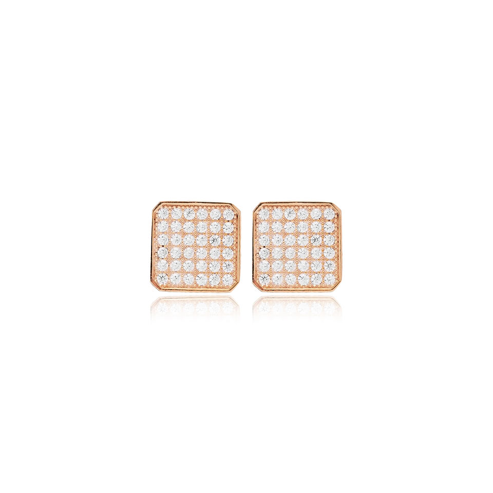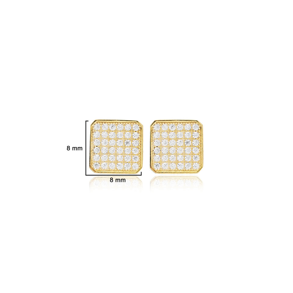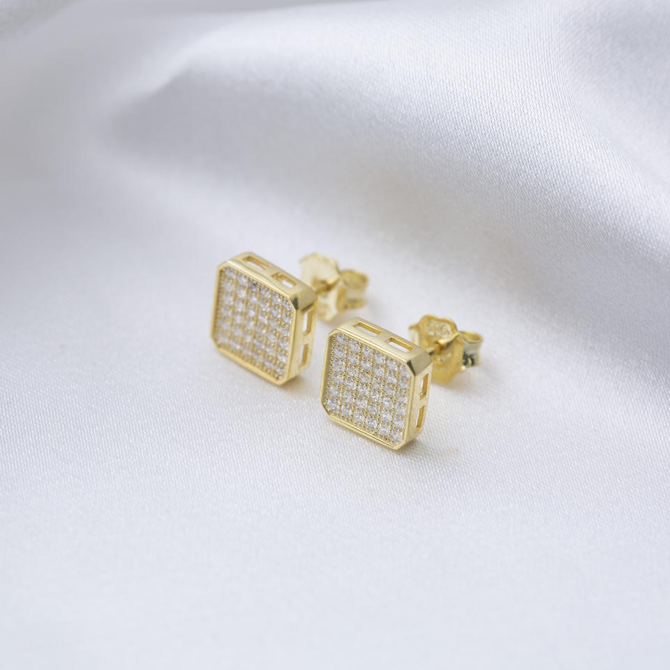 ต่างหูทรงสี่เหลี่ยมประดับเพชร CZ สีขาว เครื่องประดับชั้นดี ทำจากเพทายใส งานแฮนด์เมด เงินแท้ 925 ชุบทอง เหมาะสำหรับเป็นของขวัญในงานปาร์ตี้