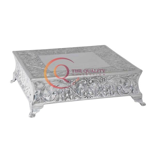ขาตั้งเค้กแต่งงานรูปทรงสี่เหลี่ยมอลูมิเนียมลายนูนขาตั้งเค้กราคาดีและมีคุณภาพพิเศษ