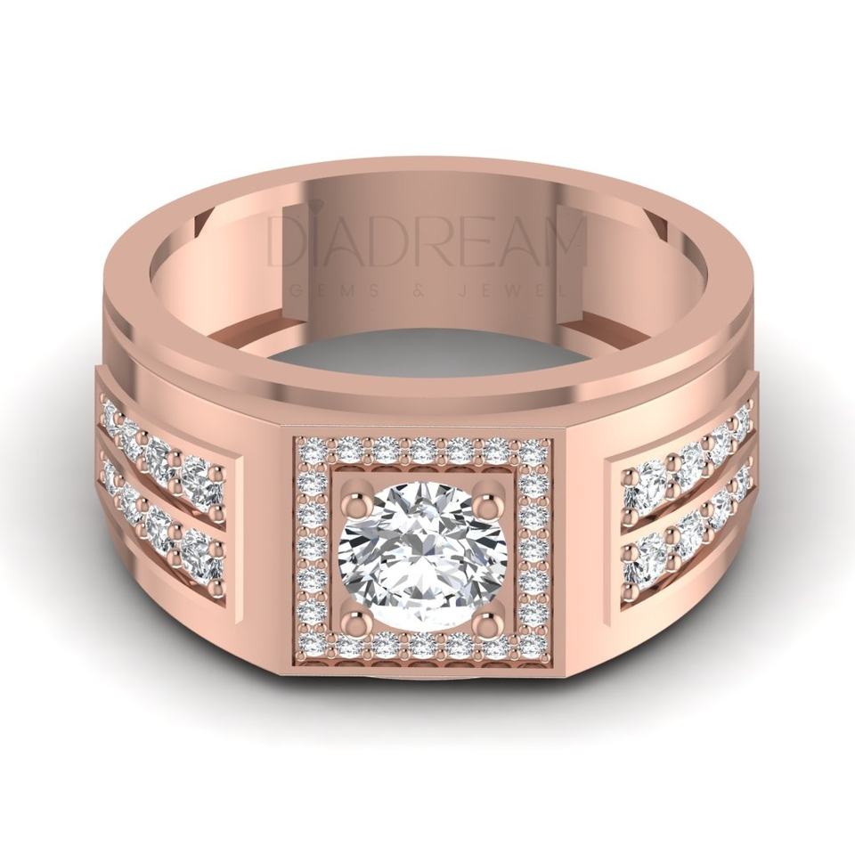 แหวนเพชรเม็ดเดี่ยวทรงสี่เหลี่ยมสำหรับผู้ชายคอลเลกชั่นที่ไม่ซ้ำกันเครื่องประดับทรงกลมตัดเพชรแบบกำหนดเองสำหรับทุกเพศ