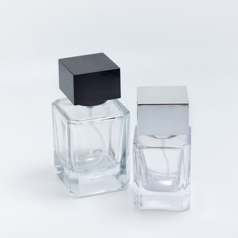 ขวดน้ำหอมสเปรย์ทรงสี่เหลี่ยมขวดน้ำหอมทรงลูกบาศก์30มล. 50มล. 100มล. ขวดน้ำหอมพร้อมฝาสีดำ