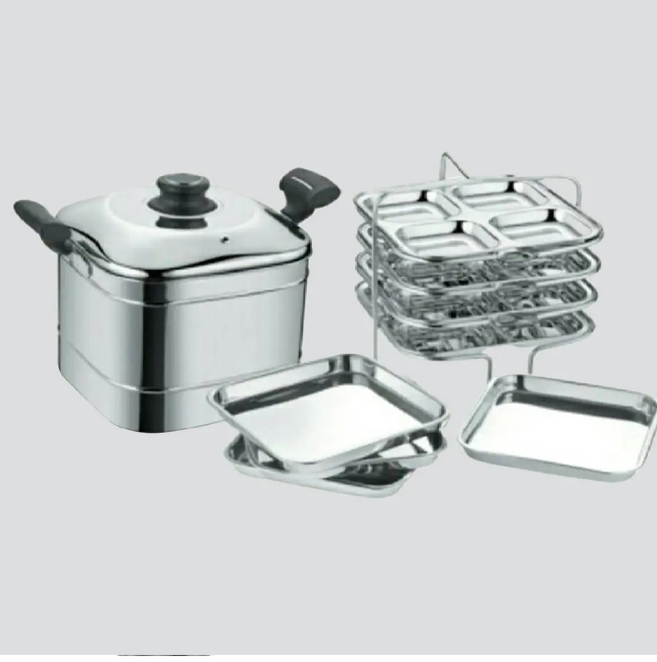 หม้อนึ่งสแตนเลสพร้อมแผ่น4แผ่นหม้อนึ่งแบบตั้งได้16ชั้น