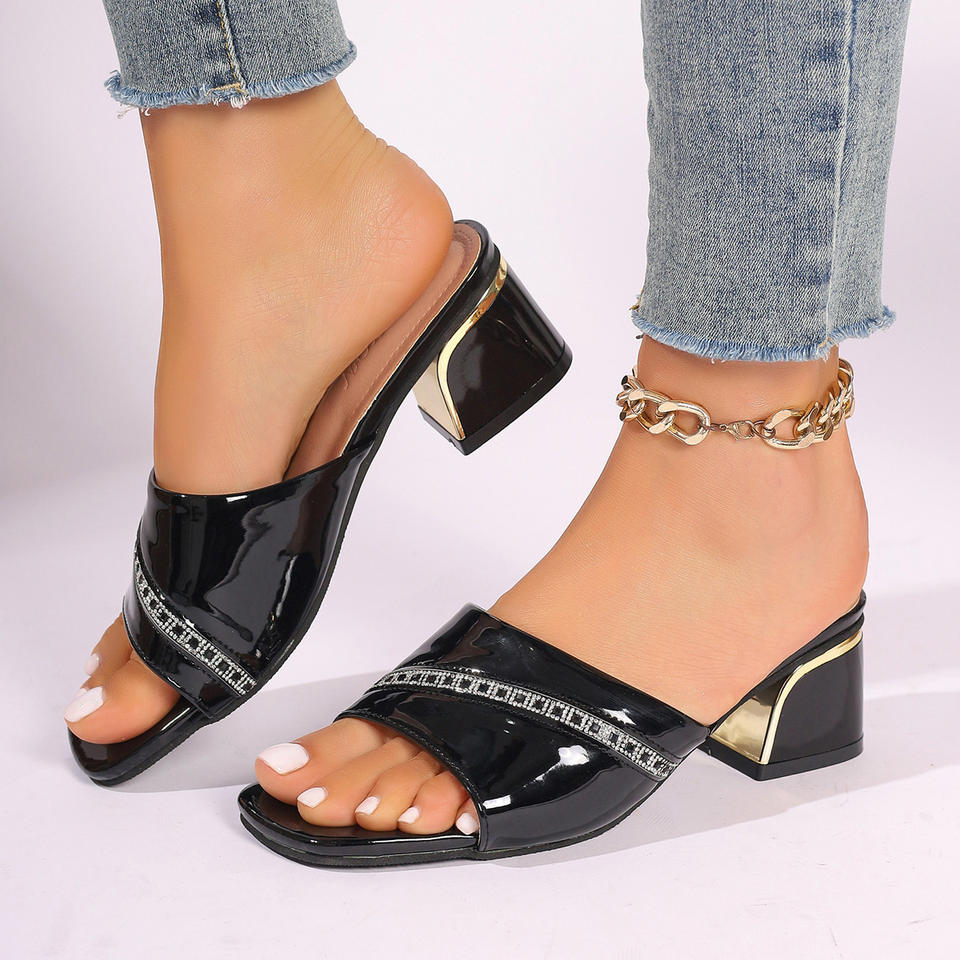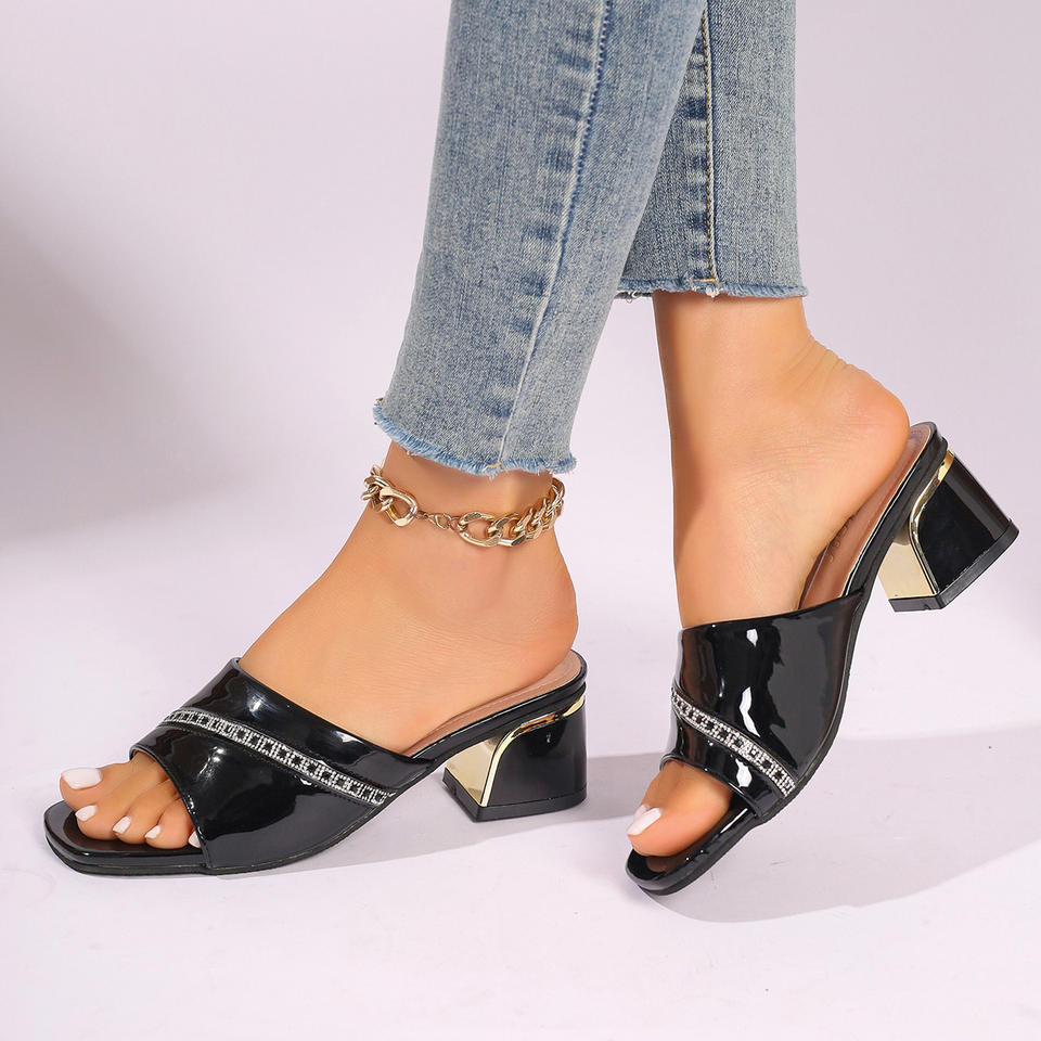 รองเท้าส้นหนาหัวเหลี่ยมแบบเปิดนิ้วเท้า ไซส์ใหญ่ แฟชั่นรองเท้าส้นสูงสำหรับผู้หญิง ฤดูร้อน รุ่นใหม่ล่าสุด แฟชั่นเสื้อผ้าสำหรับออกนอกบ้าน