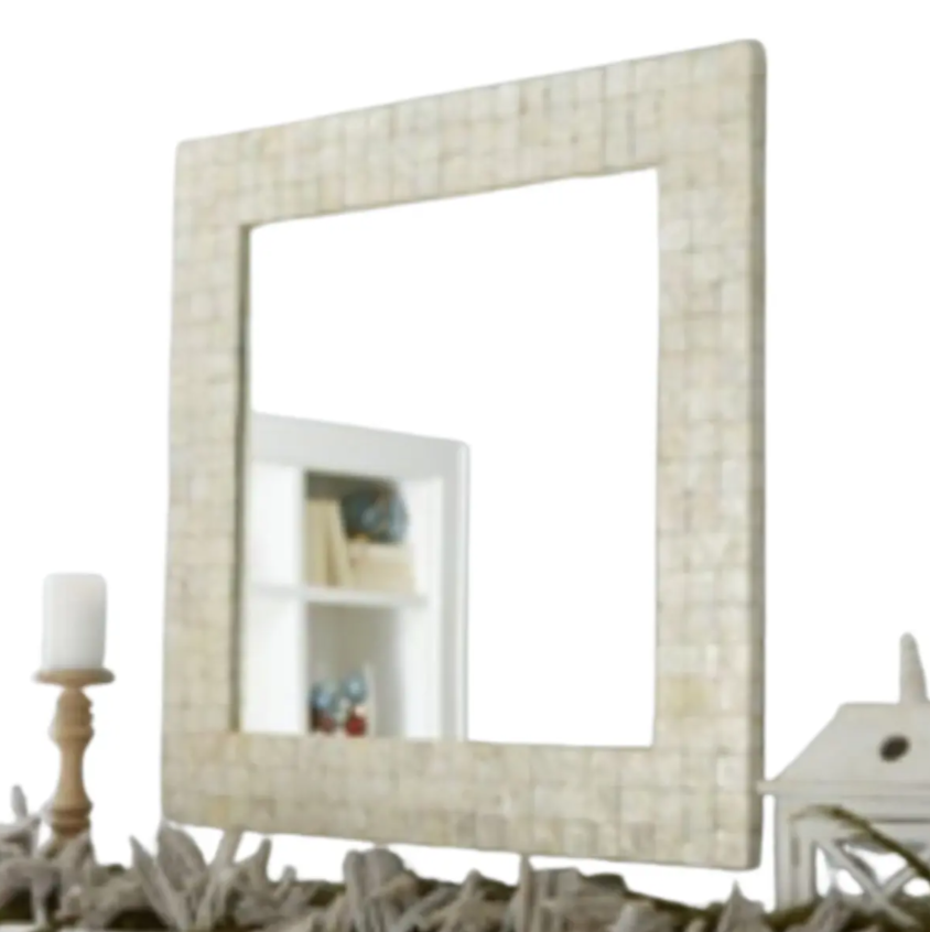 Square Wall Mirror with Capiz Design Art Deco Style Glass Product