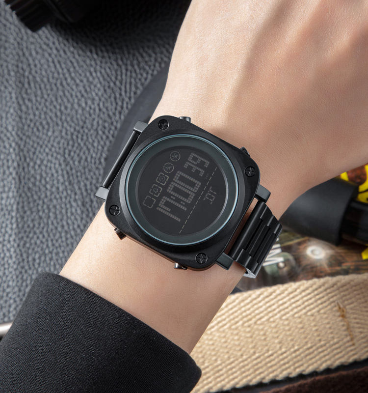 Square Watch SKMEI 1726 Fashion Watches men Luxury Stainless steel Black Digital Watch