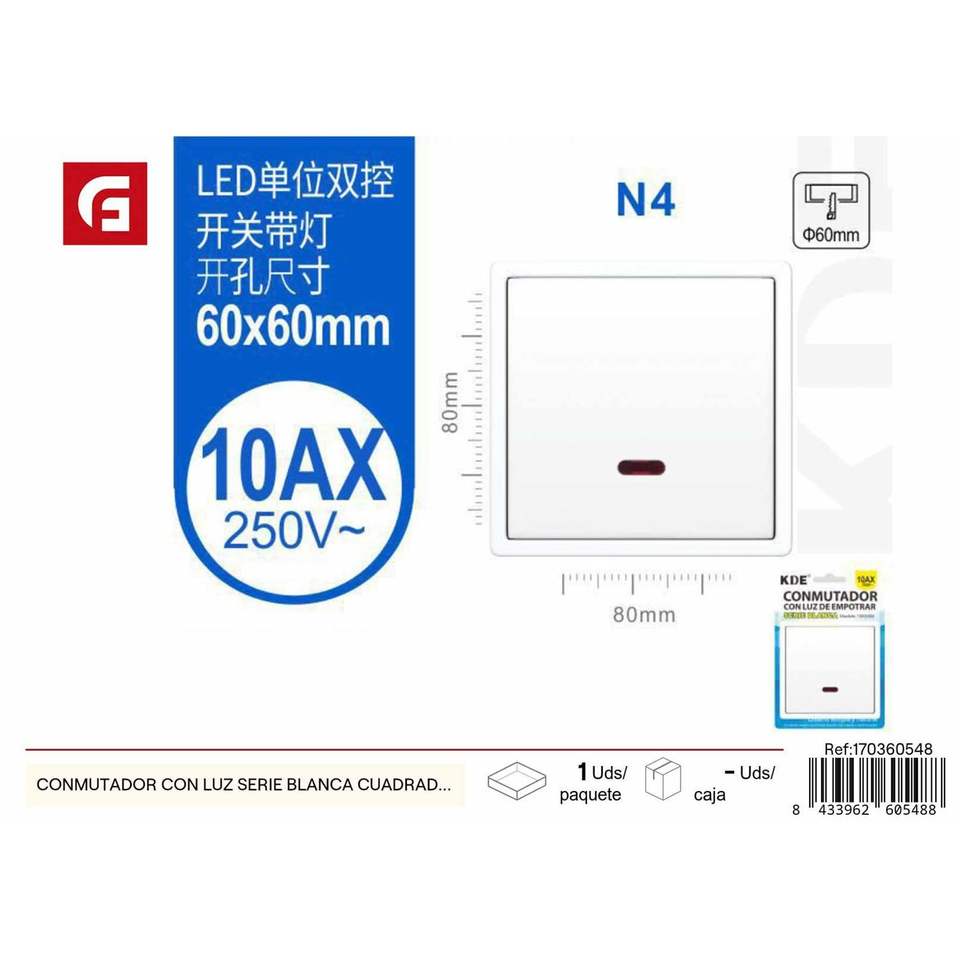 Square White Series Lighted Single Pole 4-Way 605488-Electrical Supplies Accessories ABS 45A/220V/240V 220V/240V 10A/16A/13A EU