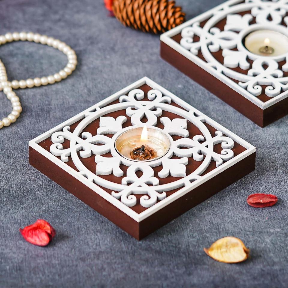 ที่วางเทียนทีไลท์ตกแต่งลายดอกไม้ทำจากไม้ทรงสี่เหลี่ยมแท่นวางเทียนสำหรับตกแต่งบ้านของตกแต่งคริสต์มาส