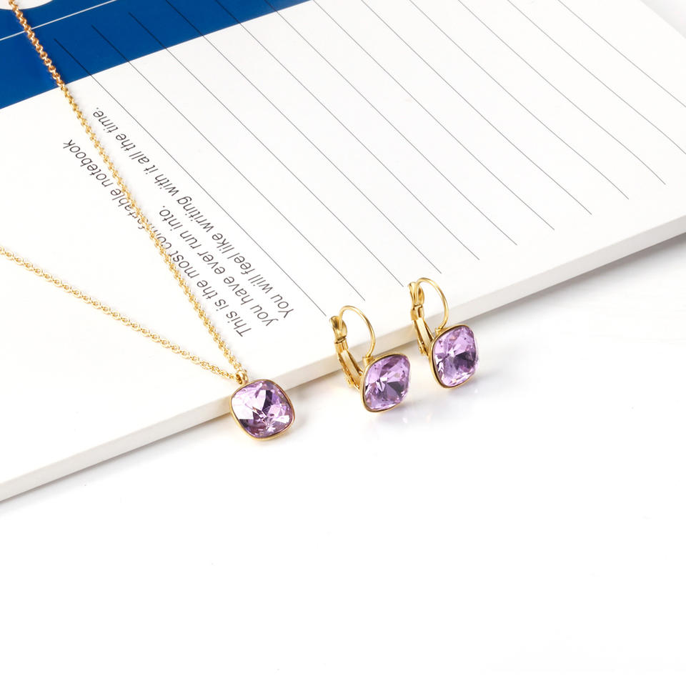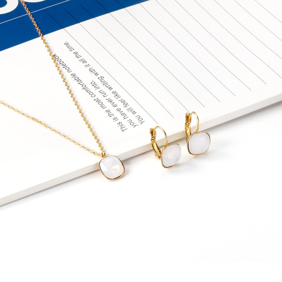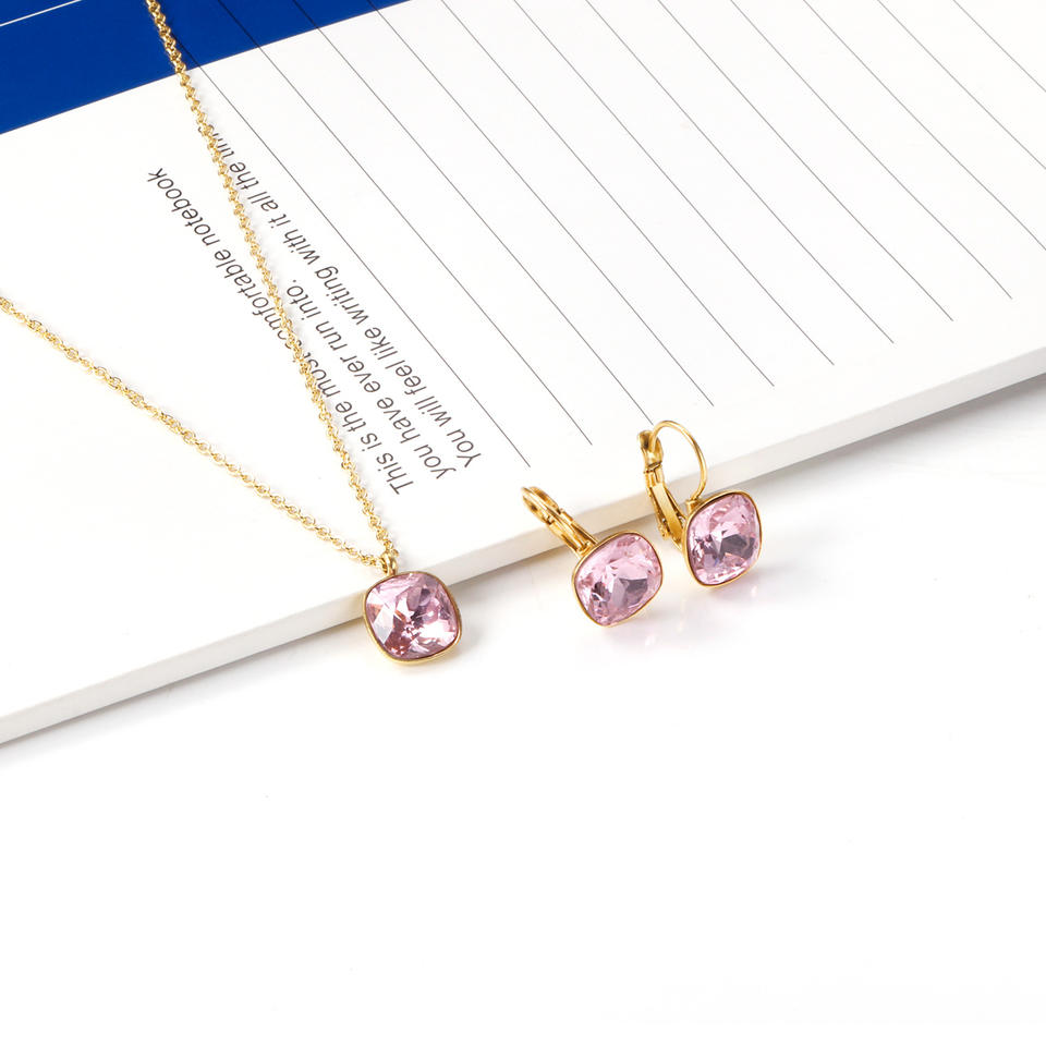 Square Zircon Necklace And Earring Set For Women Gold Plated Geometric Design Everyday Wear Jewelry Set