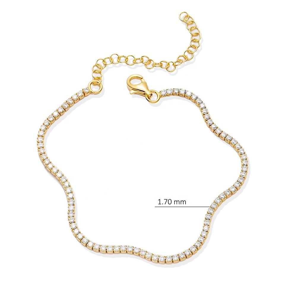 กำไลข้อมือเทนนิสดีไซน์หินเพทายสี่เหลี่ยมขนาด1.70มม. เครื่องประดับเงินสเตอริงแบบตุรกีทำมือขายส่ง925
