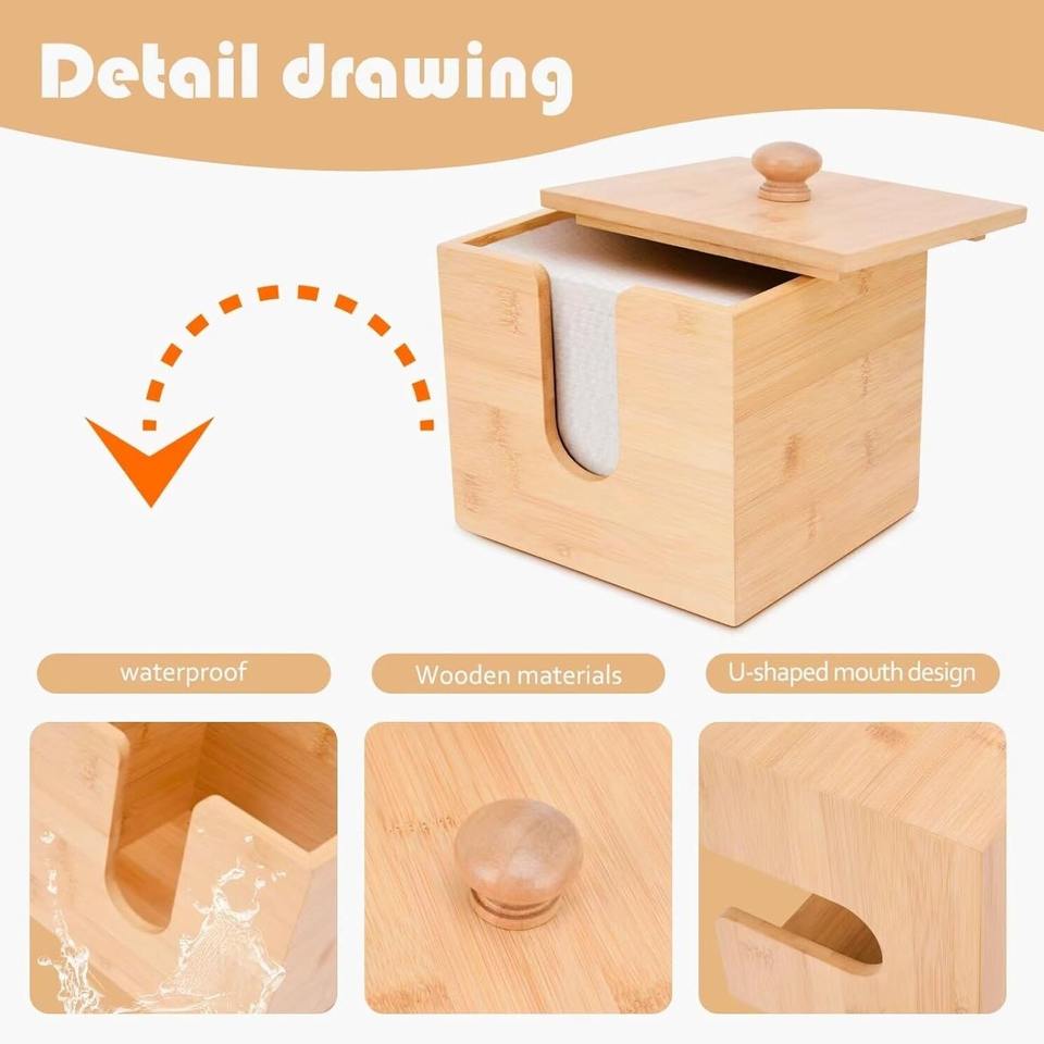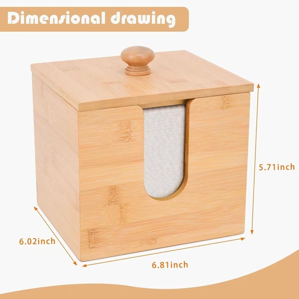 ชื่อ:กล่องทิชชู่ไม้ไผ่ทรงสี่เหลี่ยมพร้อมฝาเปิดขนาด L6 8 x W6 x H5 7นิ้ว