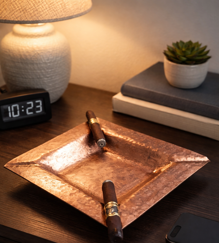 ที่เขี่ยบุหรี่ทรงสี่เหลี่ยม ที่เขี่ยบุหรี่ทองแดงตีลาย ที่เขี่ยบุหรี่สำหรับบุหรี่ 2 มวน ที่เขี่ยบุหรี่โลหะ อุปกรณ์เสริมบุหรี่ระดับพรีเมียม