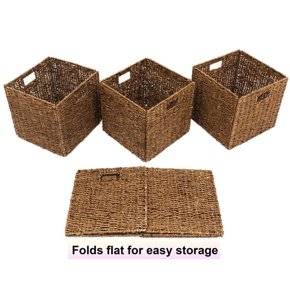 ตะกร้าหวายทะเลพับได้ทรงสี่เหลี่ยม:ขนาด: กว้าง 12 x สูง 12 นิ้ว