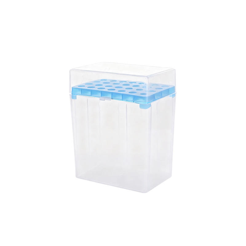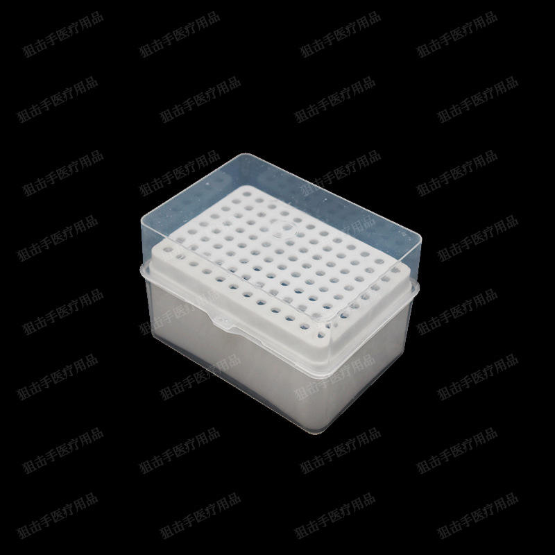 กล่องใส่ปลายปิเปตแบบมีหัวจับรูปปลาหมึก 96 หลุม แบบหลุมสี่เหลี่ยม ฐานแบน ทำจากวัสดุ PP สำหรับใช้ในห้องปฏิบัติการ