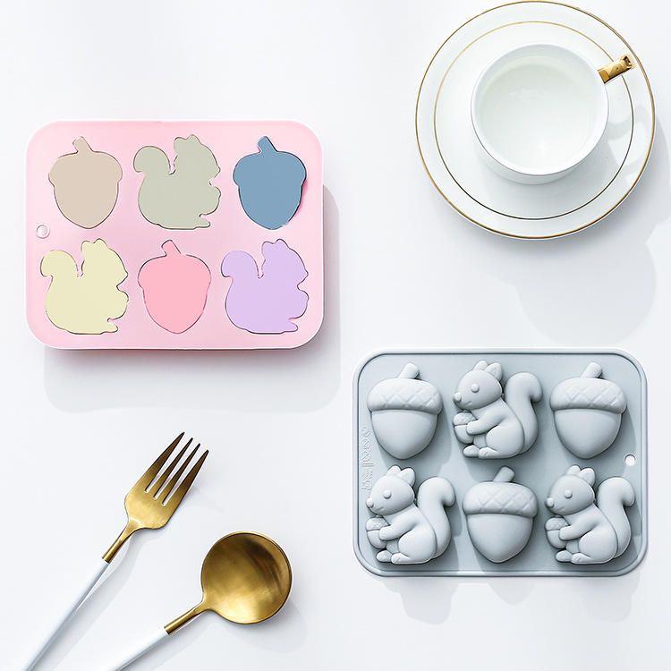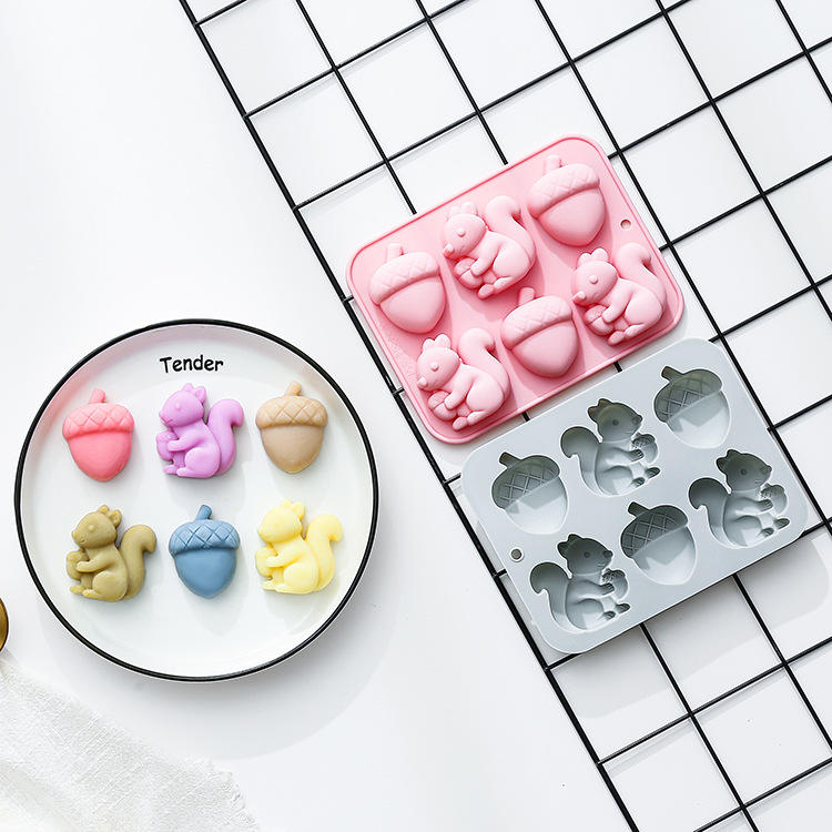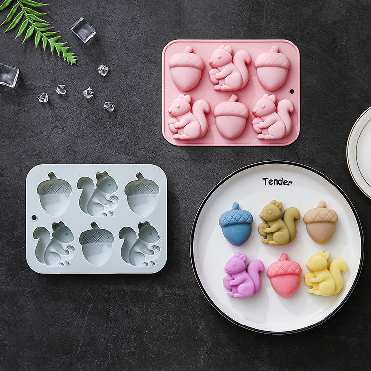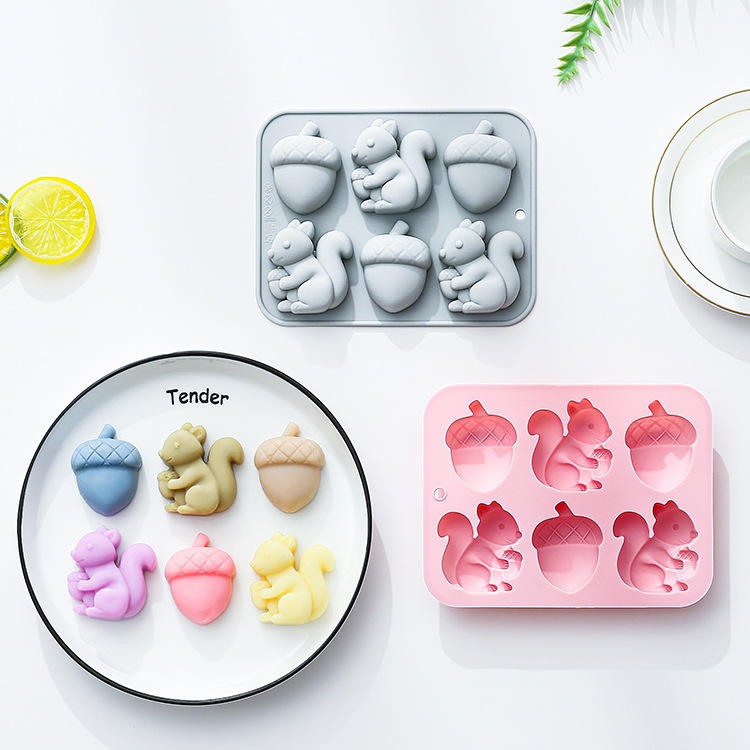 แม่พิมพ์เค้กซิลิโคนลายกระรอก ดีไซน์น่ารัก ปลอดสารพิษ ใช้ซ้ำได้ แม่พิมพ์ซิลิโคนแม่เหล็กสำหรับทำช็อกโกแลต ลูกอม และน้ำแข็ง DIY