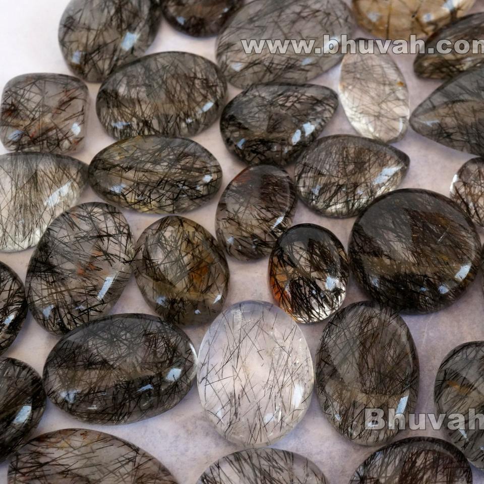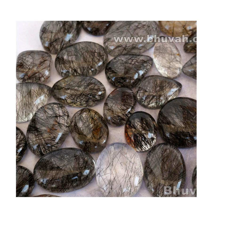 พลอยควอตซ์รูไทล์สีดำของศรีลังกาแบบคาโบชอง