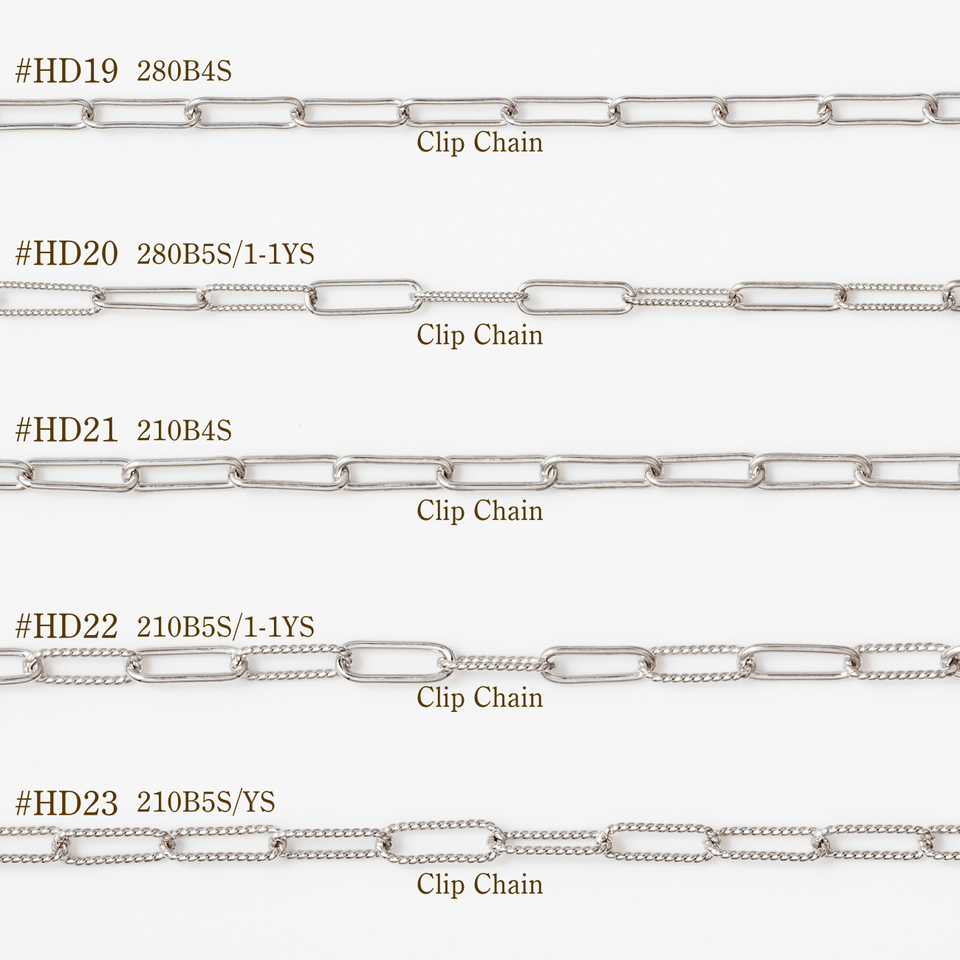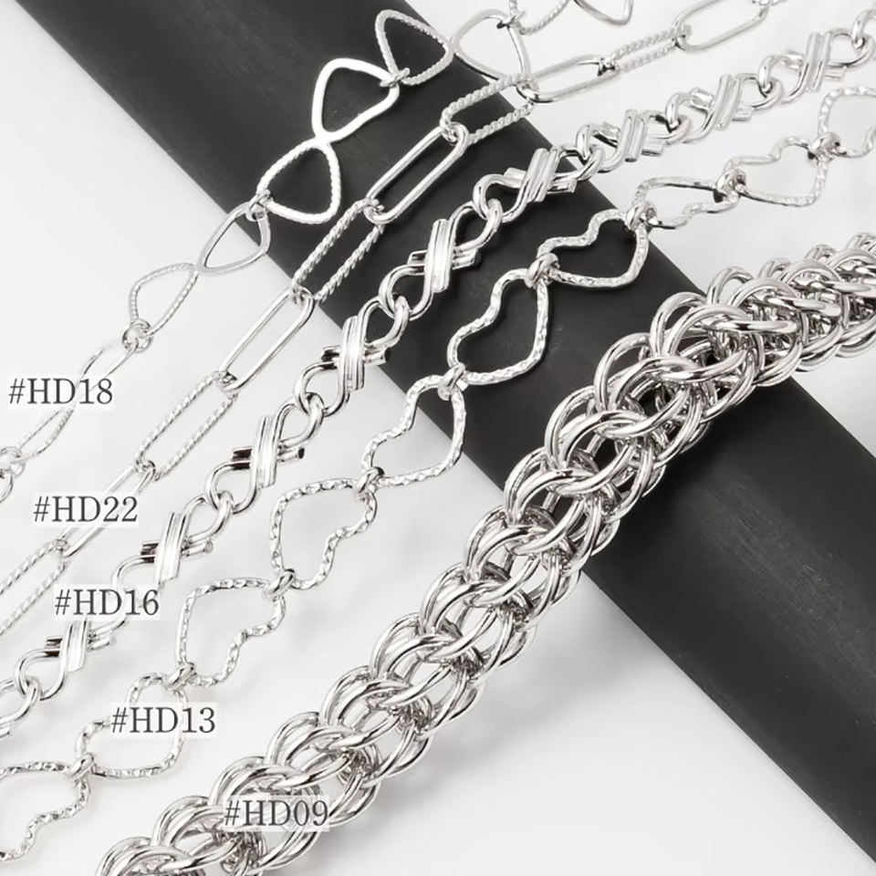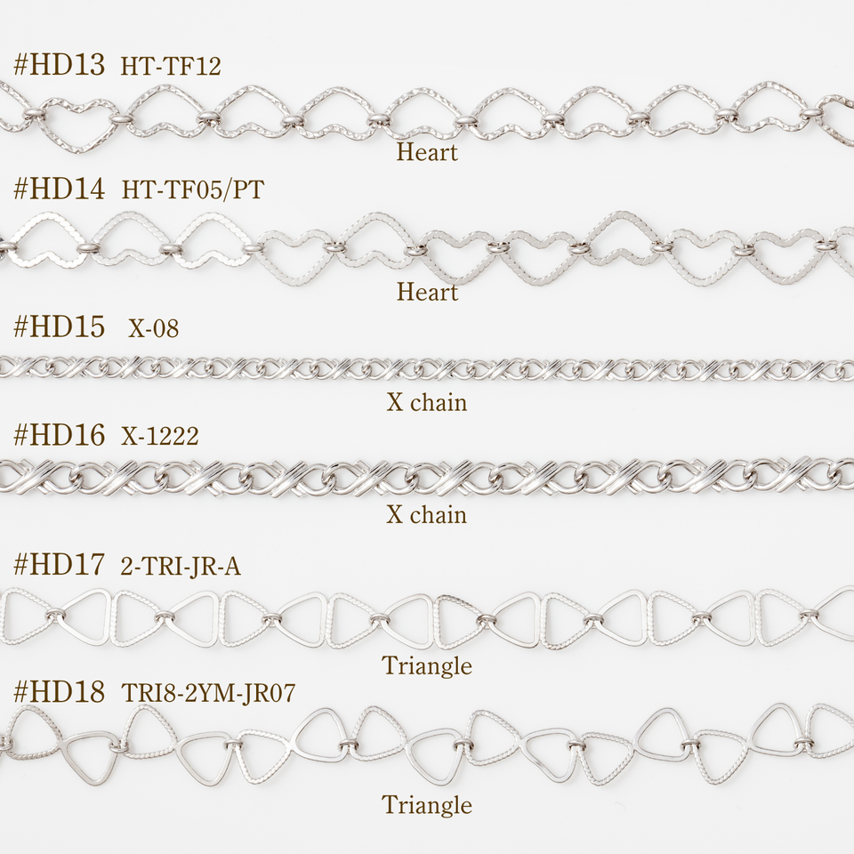 Heart, X chain, Triangle, Clip chain, Link chain