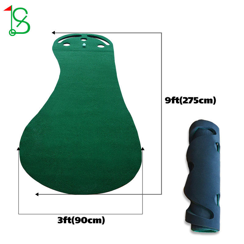 แผ่นพัตต์กอล์ฟแบบพกพาในร่ม Ss ขนาด 9 ฟุต x 3 ฟุต พร้อมดีไซน์ม้วนเก็บได้ สำหรับฝึกซ้อม