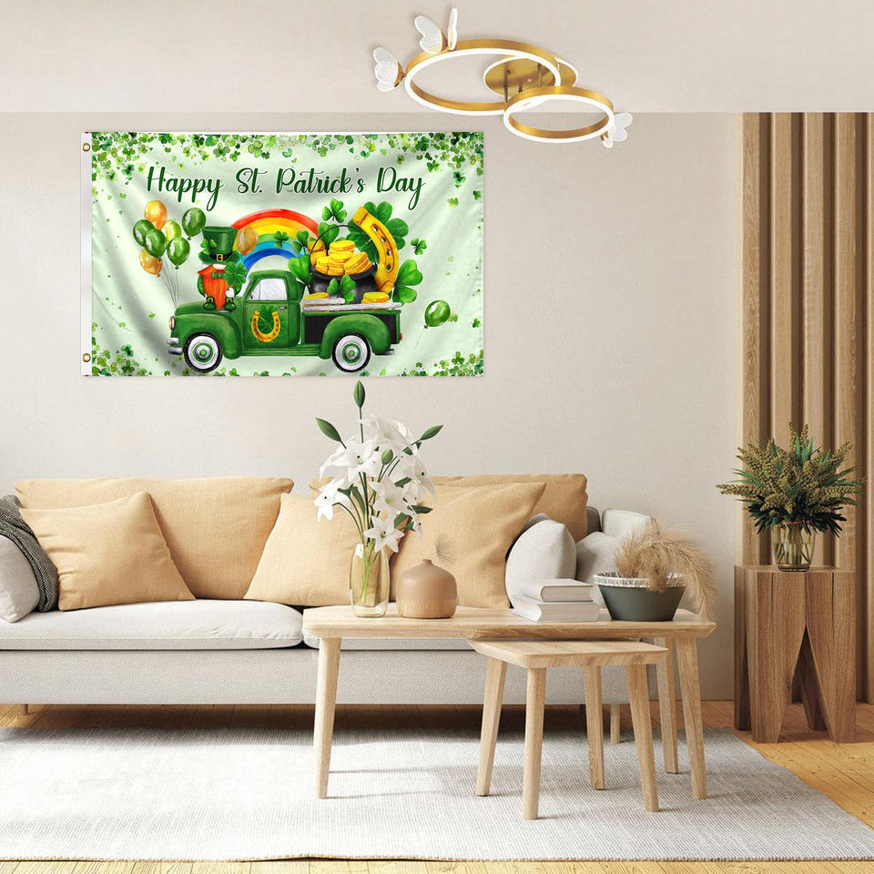 ธงสามเหลี่ยมสองด้านขนาด 3*5 ฟุต สำหรับวันเซนต์แพทริก ผลิตด้วยเทคนิคการพิมพ์ดิจิทัล เหมาะสำหรับตกแต่งลานกลางแจ้ง