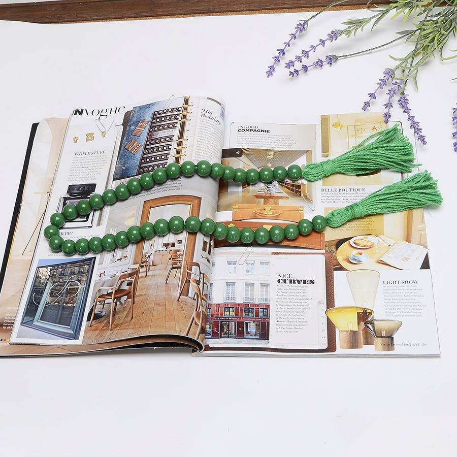 พวงมาลัยลูกปัดไม้วันเซนต์แพทริกสำหรับบ้านไร่ประดับด้วยพู่หลากสีลูกปัดสวดมนต์สไตล์โบโฮแบบชนบทสำหรับตกแต่งบ้านแขวนผนัง