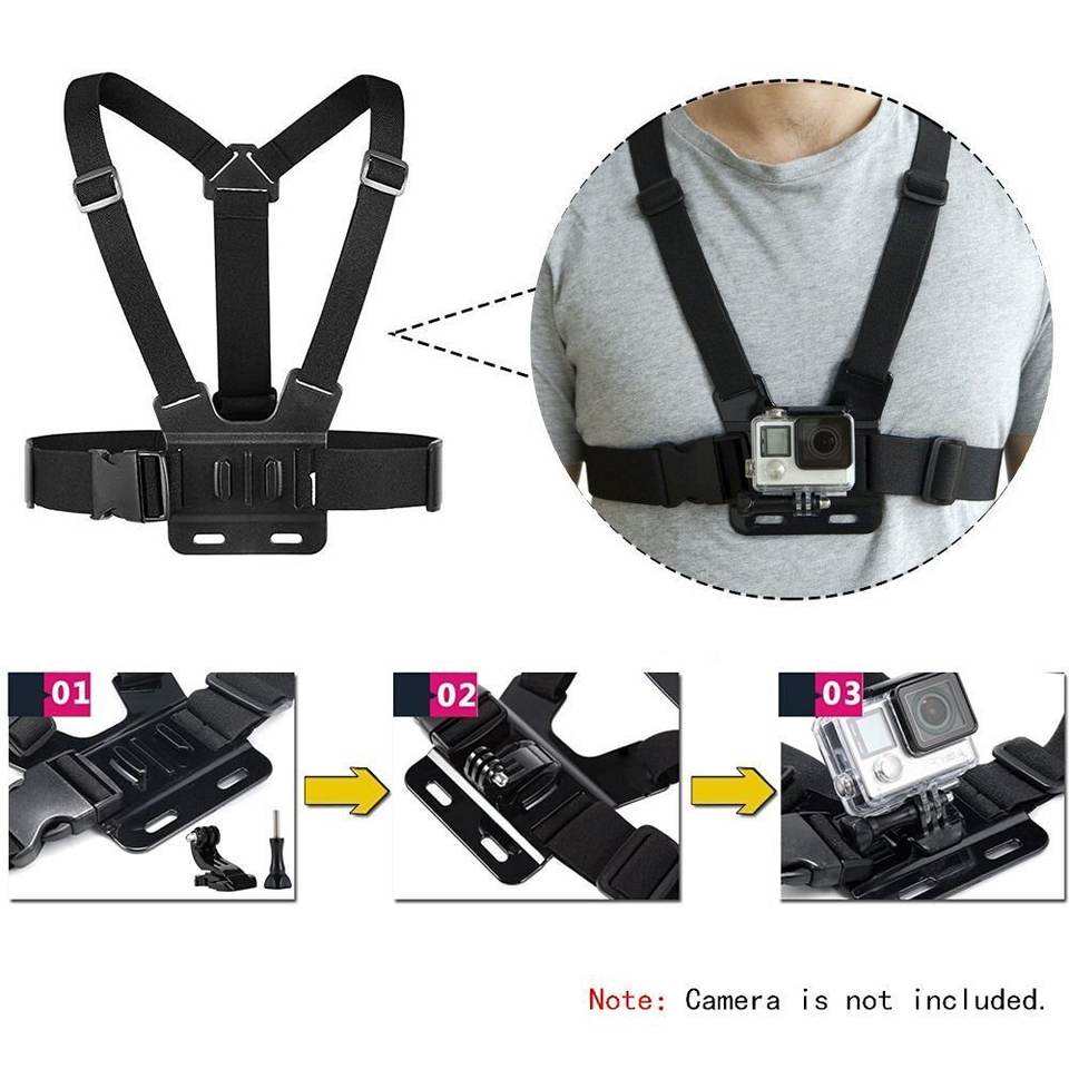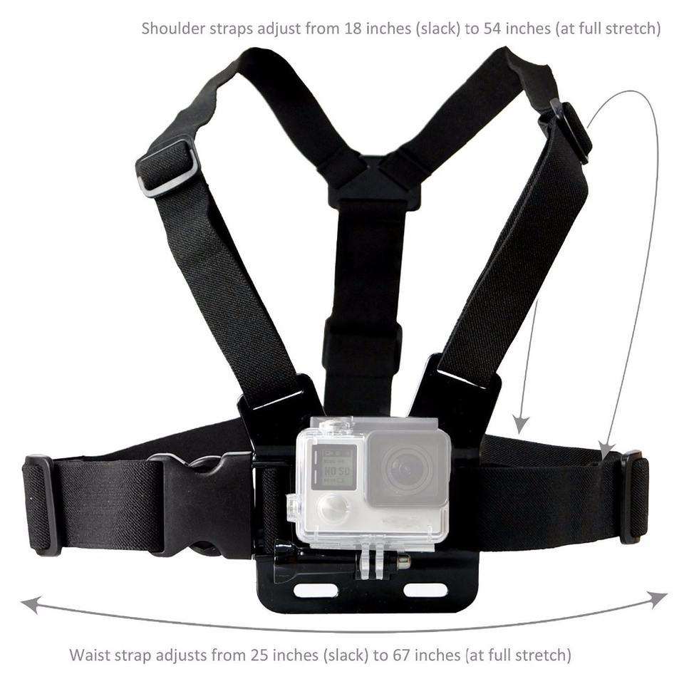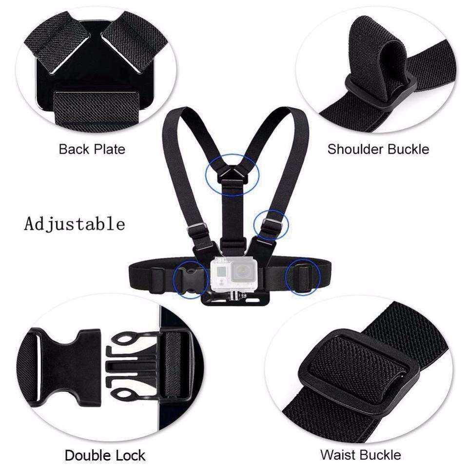 สายรัดติดอกแบบปรับได้สำหรับกล้อง GoPro, SJCAM, INSTA 360, dji Osmo ใช้ได้กับกิจกรรมปั่นจักรยาน ขี่มอเตอร์ไซค์ และเล่นสกี