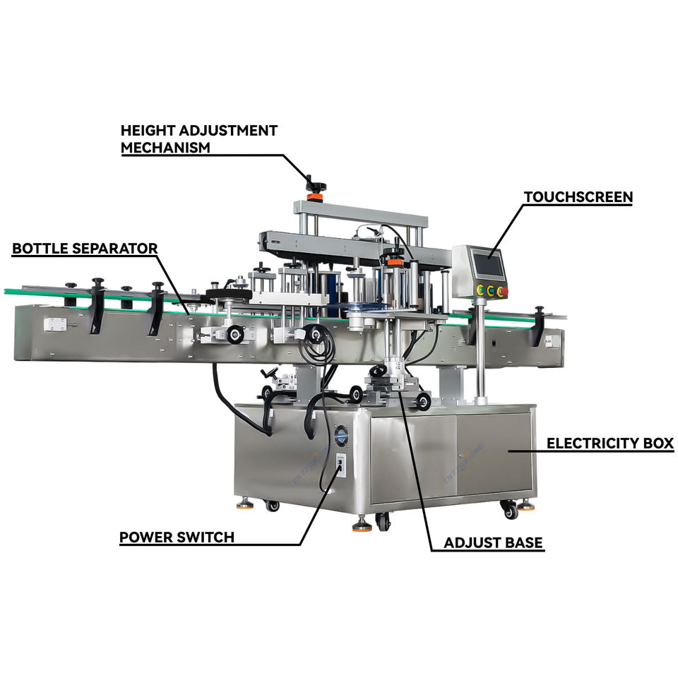 เครื่องติดฉลากอัตโนมัติแบบมั่นคง สำหรับติดฉลากขวดกลม ขวดเหลี่ยม และกระป๋อง ทั้งแบบสองด้านและด้านเดียว