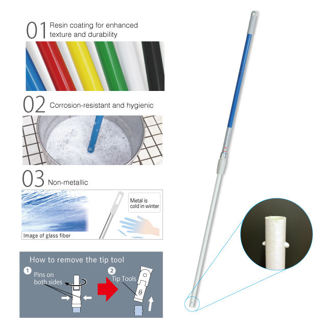ด้ามจับไฟเบอร์กลาสแบบยืดหดได้ แข็งแรงทนทาน ใช้งานได้นานกว่า 20,000 รอบ รูปทรงหัวกระบอกสูบ สำหรับเครื่องมือทำความสะอาด ใช้ในบ้านและสำนักงาน ผลิตในญี่ปุ่น