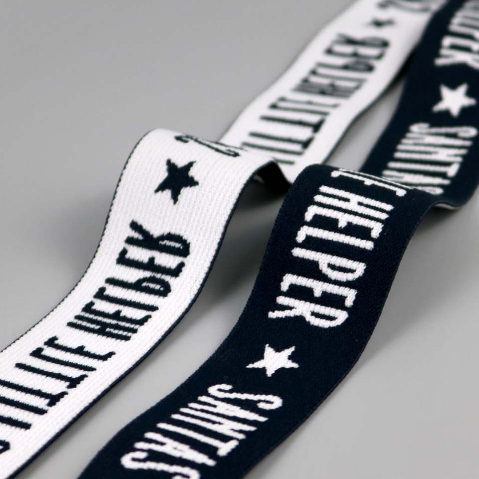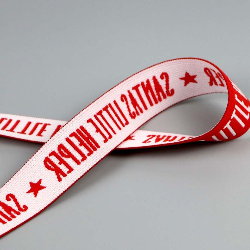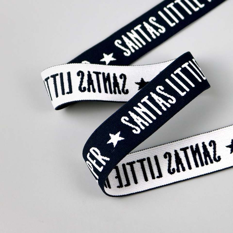 สายรัดยางยืดโพลีเอสเตอร์ลาเท็กซ์แบบเส้นใยทอแจ็คการ์ด โลโก้สั่งทำได้ ได้รับการรับรองมาตรฐาน Oeko-Tex เป็นมิตรกับสิ่งแวดล้อม อุปกรณ์เสริมสำหรับเสื้อผ้า