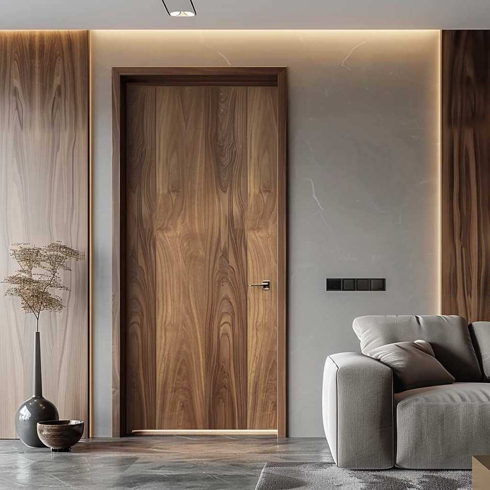 ประตูไม้ MDF ขึ้นรูปแข็งแรง ทนน้ำ เคลือบโพลิเมอร์สีวอลนัทดำ สำหรับบ้าน สำนักงาน ห้องนอน โรงเรียน โรงแรม ดีไซน์ทันสมัย