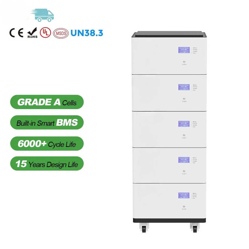 ระบบจัดเก็บพลังงานแสงอาทิตย์สำหรับบ้านแบบซ้อนได้ 51.2V 48V 1000Ah 50kWh ระบบพลังงานแสงอาทิตย์ 10kw 20kw 30kw 40kw แบตเตอรี่ลิเธียมไอออนพลังงานแสงอาทิตย์ 50kWh ลิเธียม