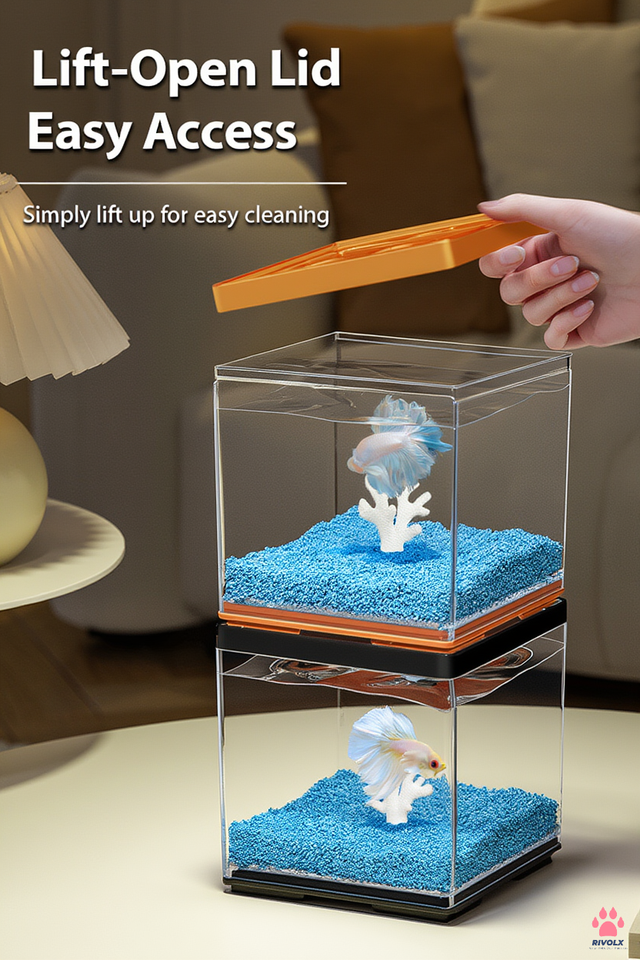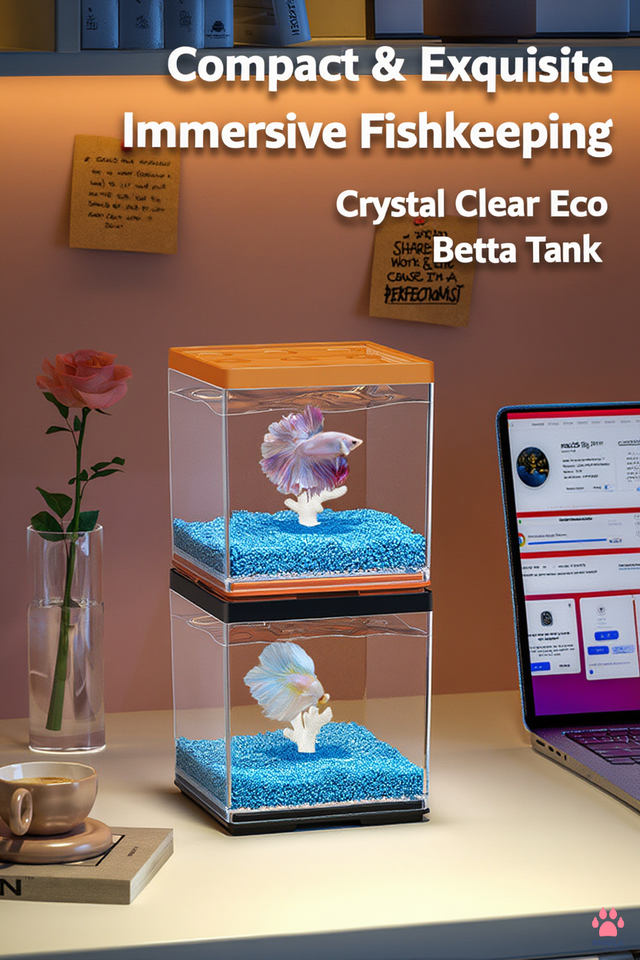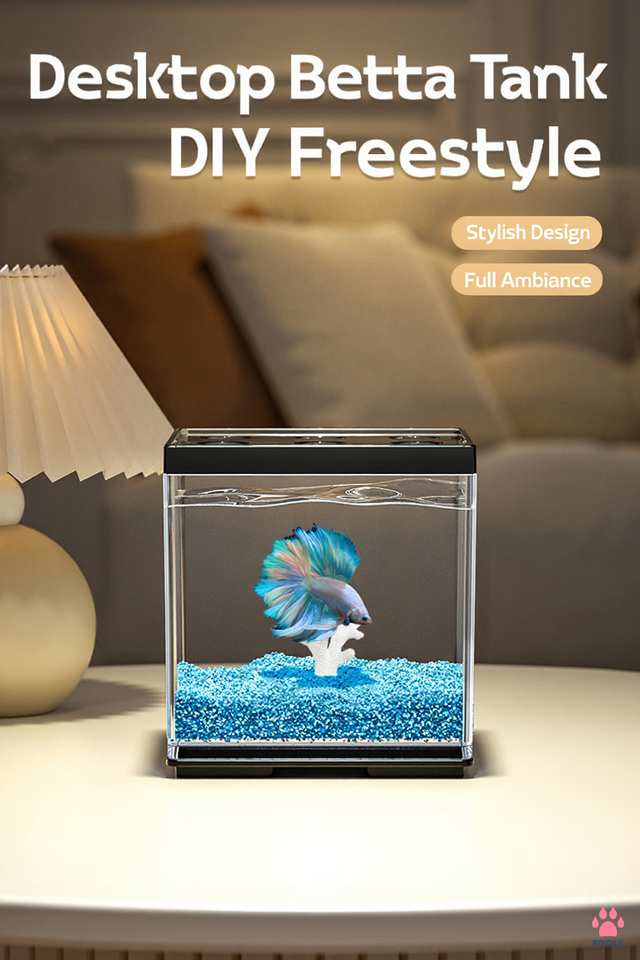 ตู้ปลาตั้งโต๊ะแบบมินิ วัสดุใส ทนทานต่อการแตกหัก พร้อมช่องให้อาหาร เหมาะสำหรับตกแต่งโต๊ะทำงาน