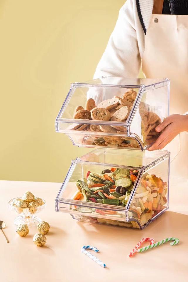 กล่องเก็บอาหารแบบซ้อนได้สำหรับคุกกี้ ลูกอม มัฟฟิน ข้าวโอ๊ต ขนมปัง โรล เบเกิล อาหารแห้ง
