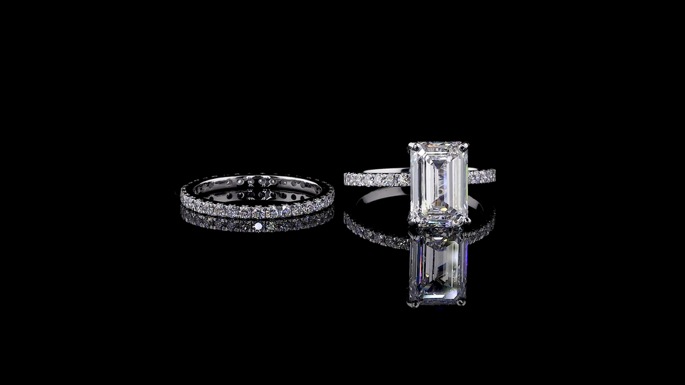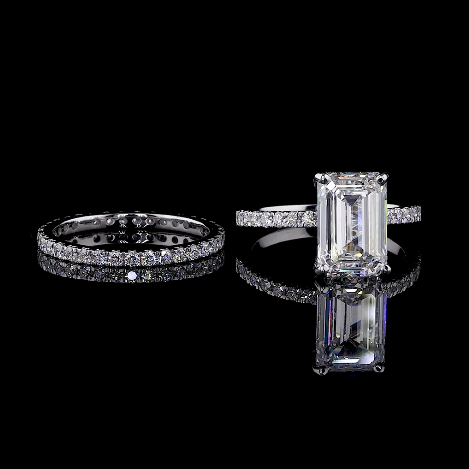 แหวนนิรันดร์แบบซ้อนได้ ประดับเพชรทรงกลมและทรงมรกตที่เพาะเลี้ยงในห้องปฏิบัติการ | ชุดทำงานสุดหรูและแหวนของขวัญ