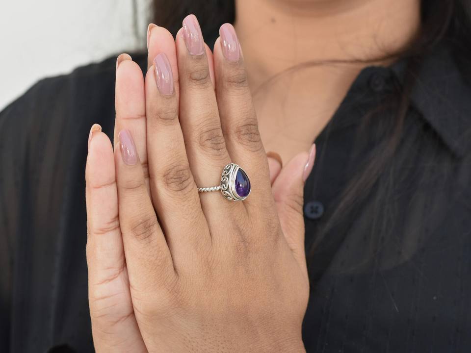 แหวนพลอยอเมทิสต์ลายลูกแพร์925เงินสเตอร์ลิงเครื่องประดับแฮนด์เมดจำนวนมากขายส่ง