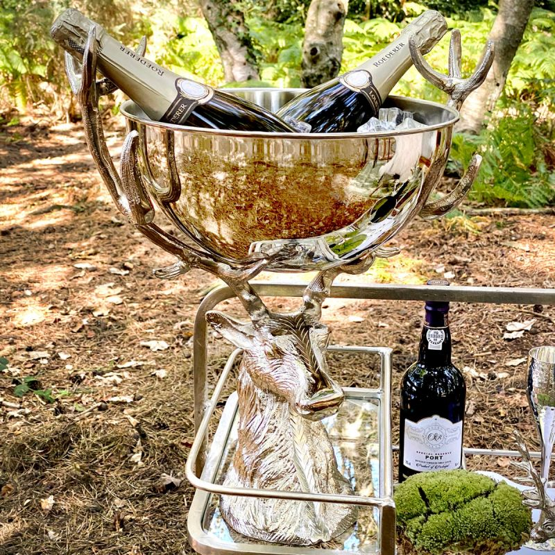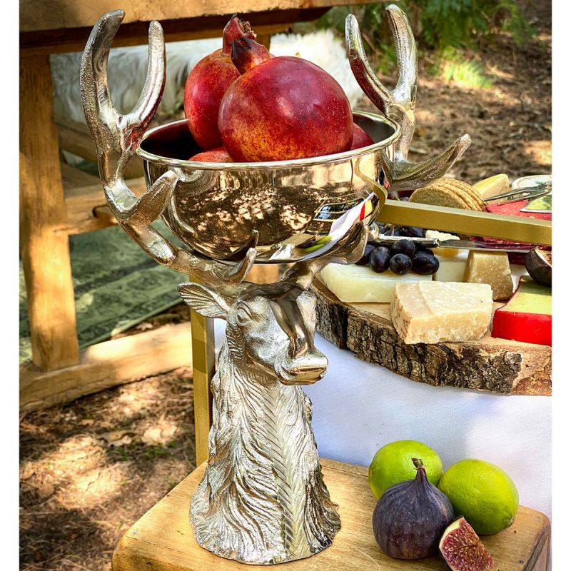 ชามผลไม้โลหะรูปทรงซ้อนกันได้พร้อมแท่นวางรูปกวางสุดสร้างสรรค์ของตกแต่งโต๊ะใช้ในงานปาร์ตี้ที่จำเป็นต่อสิ่งแวดล้อม