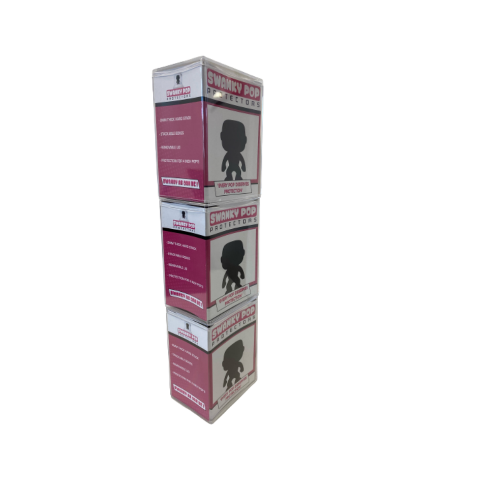 ตัวป้องกัน POP Swanky แบบวางซ้อนกันได้ 4 นิ้วกรณีแสดงของเล่น POP โล่พลาสติกแข็งใสพร้อมฝาปิดแบบถอดได้