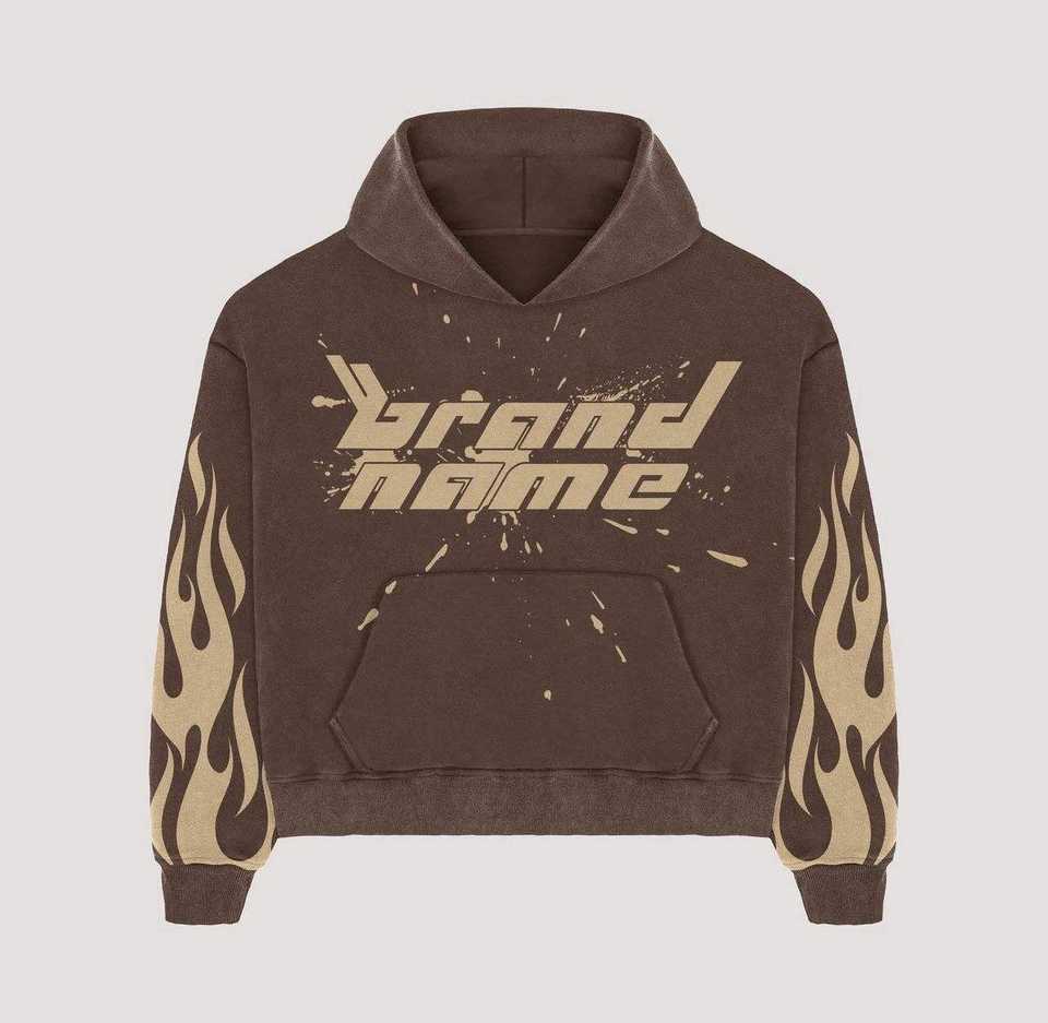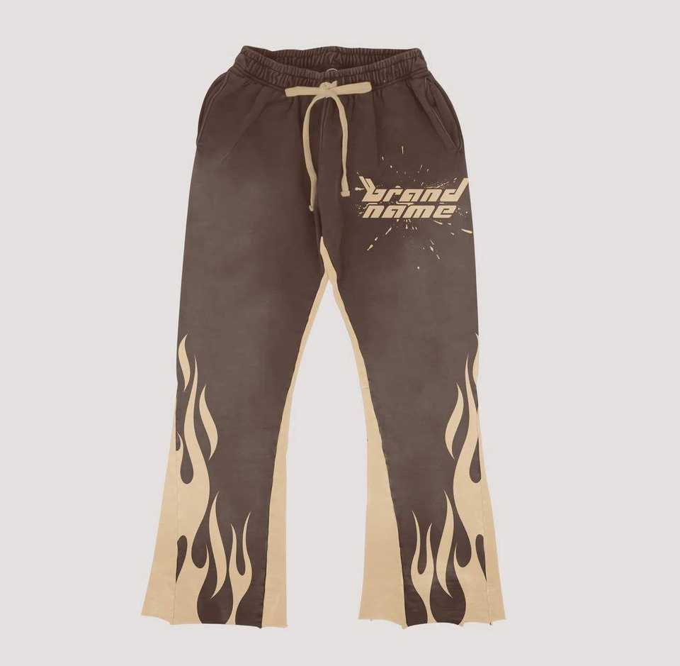 ชุดวอร์มผู้ชายสไตล์สตรีทแวร์ แบรนด์ดีไซน์เฉพาะตัว ล้างสีแบบแอซิด ทรงขาบาน พร้อมกางเกงฮู้ดและกางเกงทรงสแต็ค