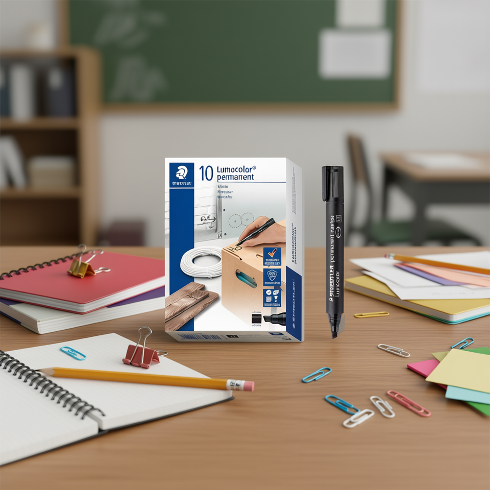 สเตดเลอร์ ลูโมคัลเลอร์ปากกามาร์กเกอร์ถาวร สีดำ ปลายเฉียง 10 แพ็ค เครื่องมือเขียน อุปกรณ์สำนักงานโรงเรียน