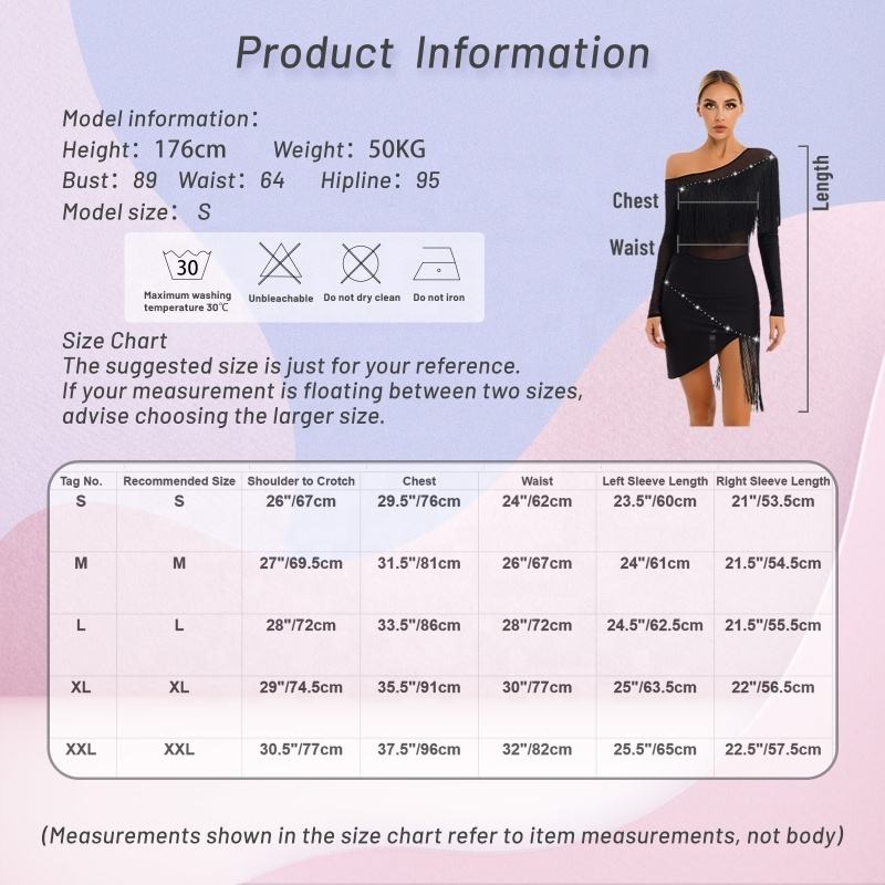 ชุดเต้นรำสำหรับขึ้นเวทีชุดเต้นรำสไตล์ละตินแขนยาวสำหรับผู้หญิงชุดแทงโก้ชา-ชาแซมบ้าสะพายไหล่ข้าง