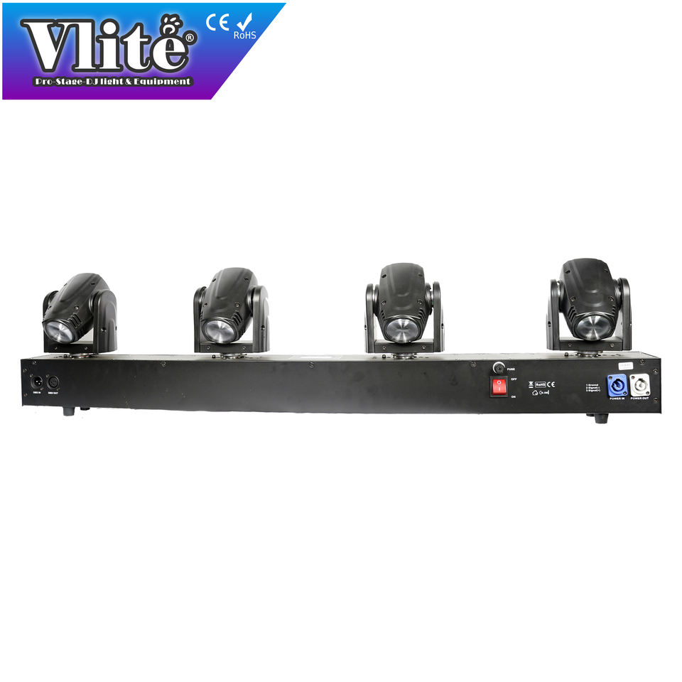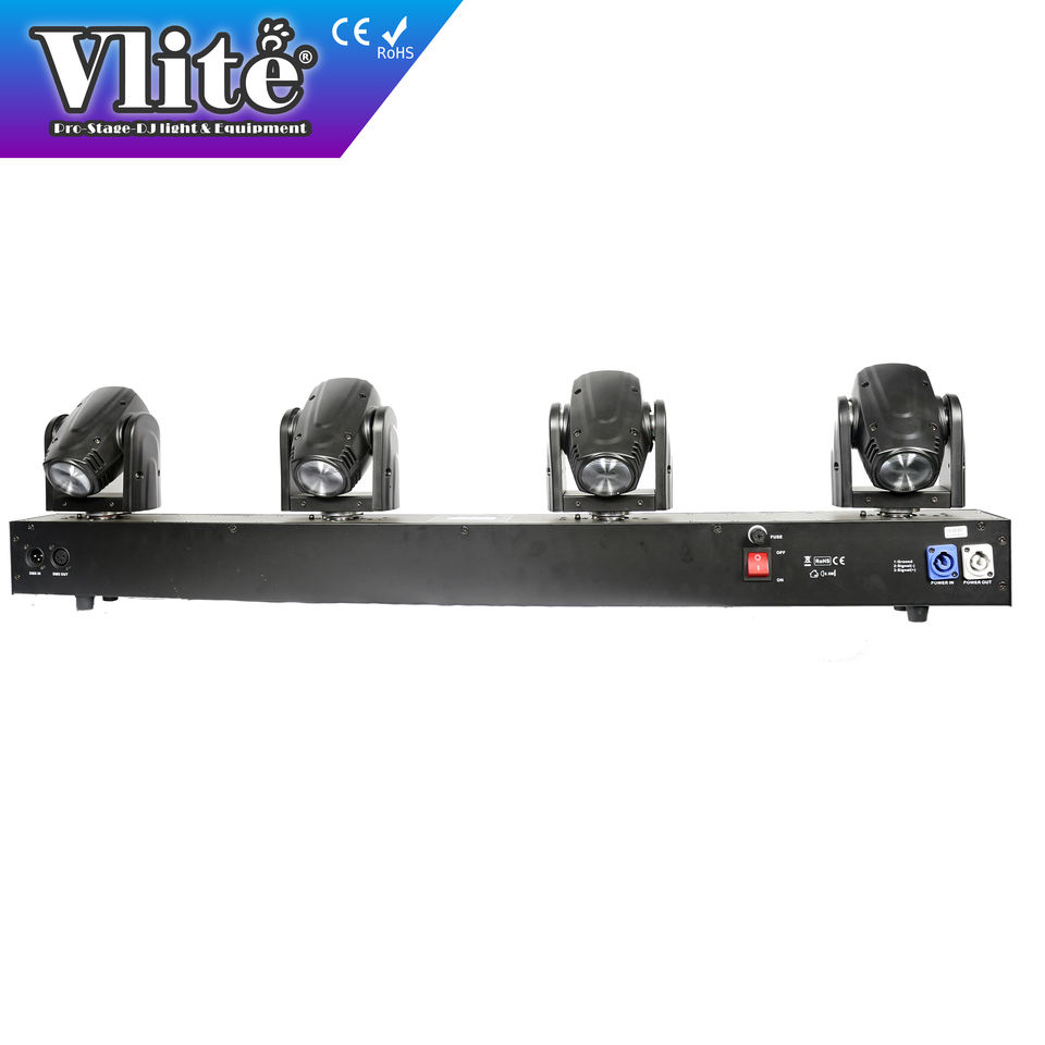 ไฟเวที VLITE 4 หัว 4 x 10W แสงสีขาวแบบลำแสง LED เคลื่อนที่ได้ 9/28 ช่องสัญญาณ DMX ปรับความสว่างได้ 0-100% มุมลำแสง 8 องศา ได้รับการรับรองมาตรฐาน CE