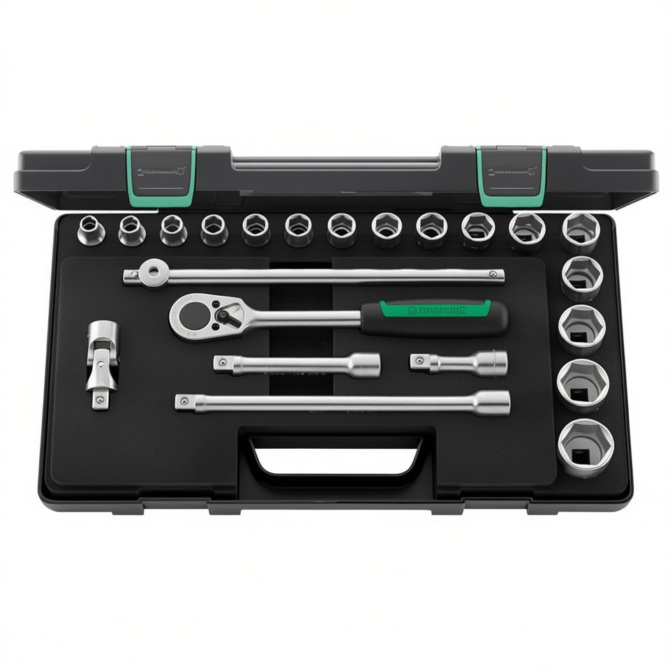 ชุดเครื่องมือประแจบล็อกหกเหลี่ยมและสี่เหลี่ยมจัตุรัส Stahlwille ขนาด 1/2 นิ้ว จำนวน 22 ชิ้น