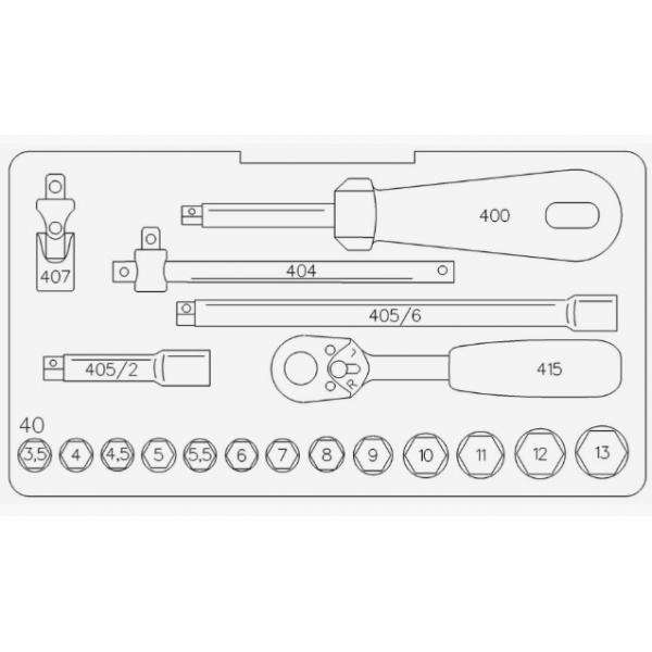 ชุดประแจบล็อกสี่เหลี่ยม Stahlwille ขนาด 1/4 นิ้ว 19 ชิ้น