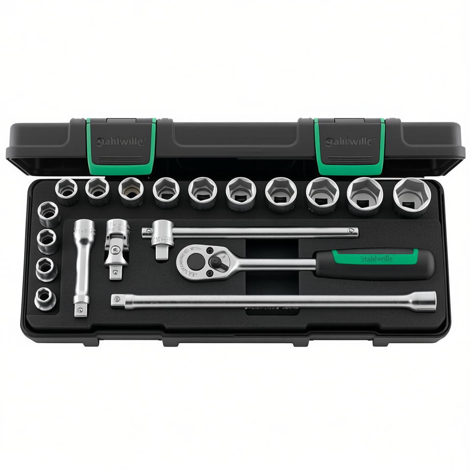 ชุดประแจบล็อกหกเหลี่ยมและสี่เหลี่ยมจัตุรัส Stahlwille ขนาด 3/8 นิ้ว ชุด 19 ชิ้น
