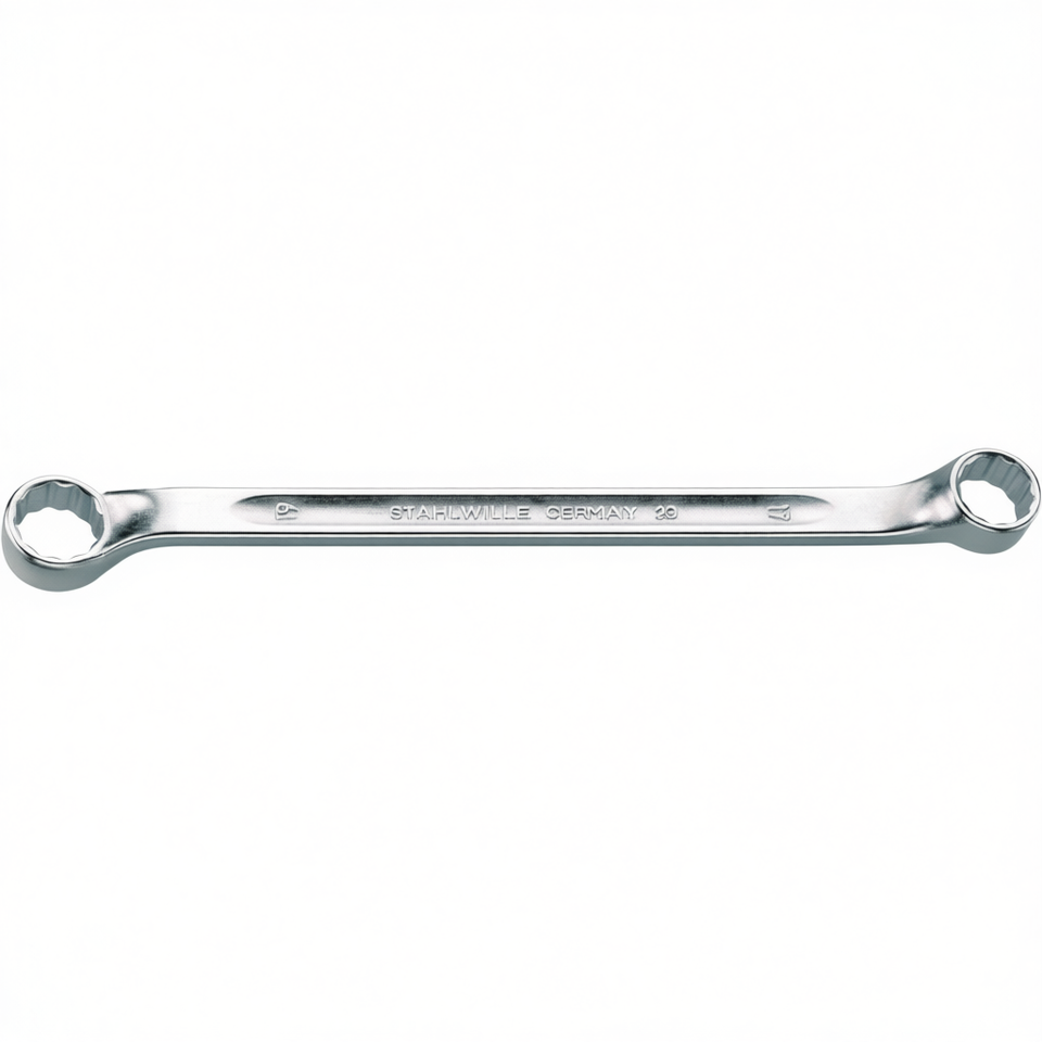 ประแจแหวนสองด้านแบบเมตริกยี่ห้อ Stahlwille พร้อมด้ามงอเล็กน้อยสำหรับการขันที่แน่น