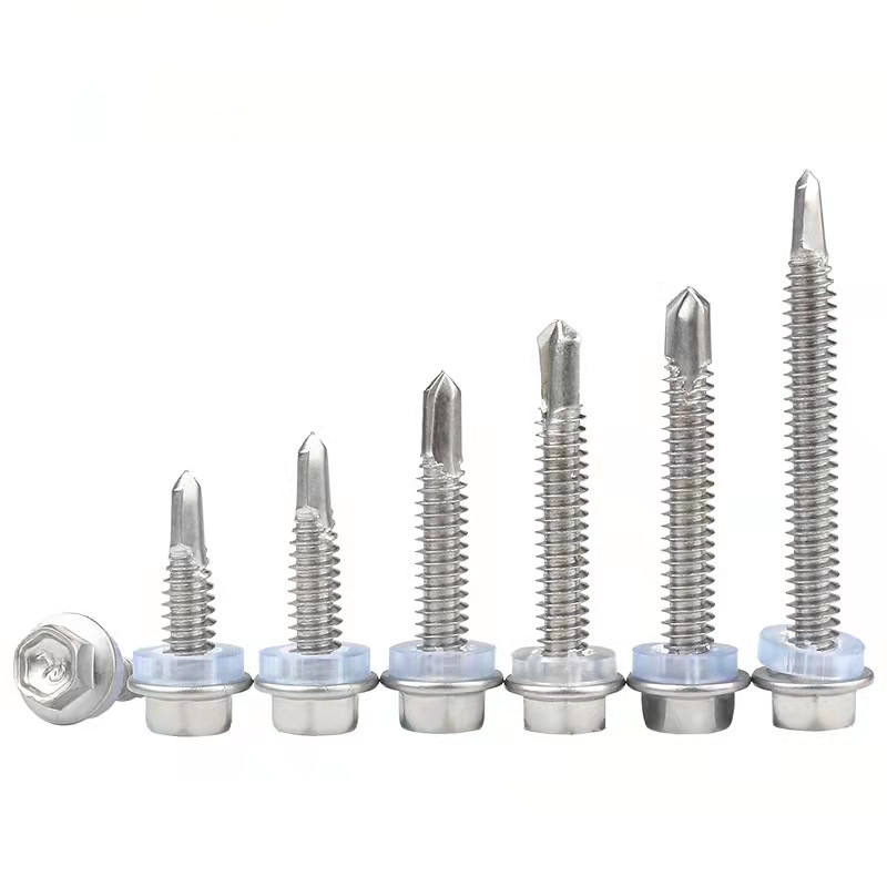 สกรูหัวหกเหลี่ยมสกรูเจาะด้วยตนเองสำหรับ M4 M2มุงหลังคาสเตนเลสสตีล SS 304 316 410แบบกำหนดเอง