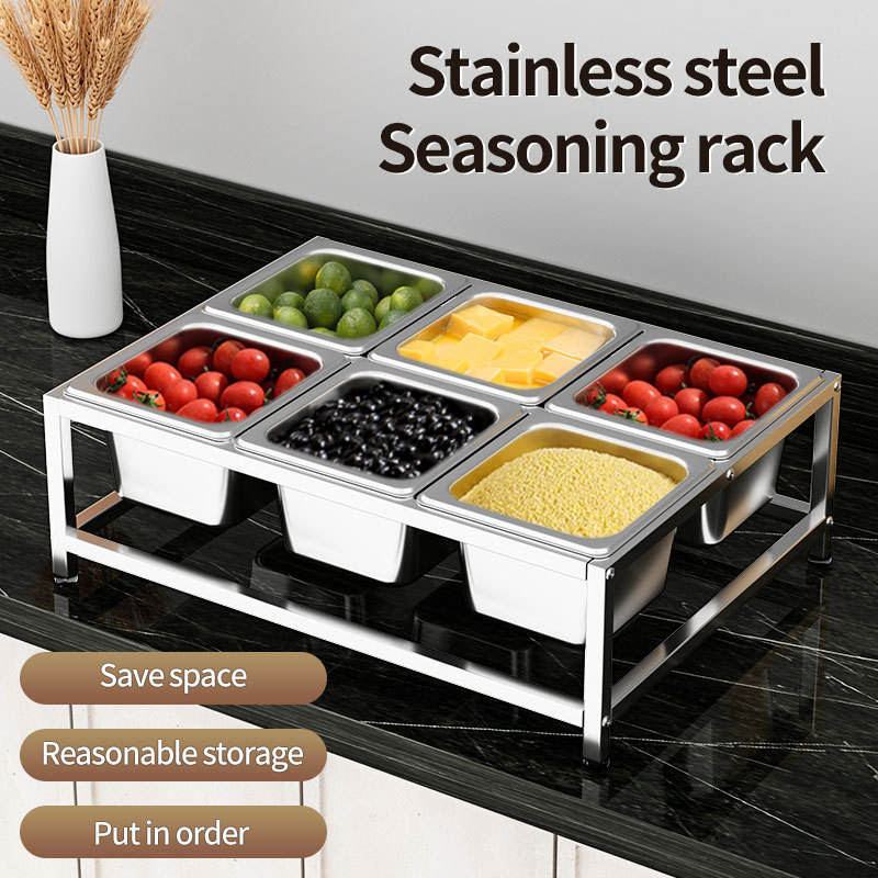ชั้นวางเสิร์ฟสแตนเลส 1/6 แถวเดียว สำหรับร้านชานม ช่องใส่ผงผลไม้และเครื่องปรุงรส ใช้บนเคาน์เตอร์เชิงพาณิชย์